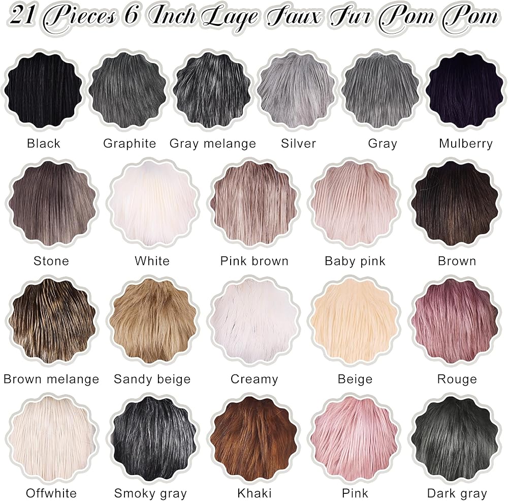 Faux Fur Pom Pom: Package includes 21 pieces faux fur pom pom in 21 colors, plentiful quantity and color pom pom are suitable for you to use and replace.