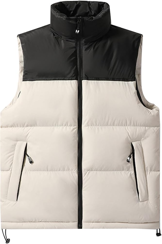 【Style】Thermal puffer vests for men, classic colorblock patchwork design, basic timeless style, mens down vest is a versatile addition to your wardrobe, whether you're going skiing, hiking, traveling, or just running errands, this puffy waistcoat will keep you cozy and protected.