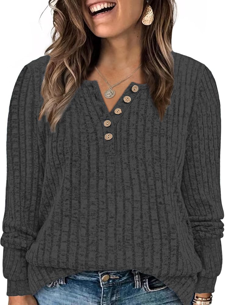 Plus size long sleeve shirts for women feature henley-style shirts with classic crew neckline, offering a dressy and elegant look to enhance your feminine charms.