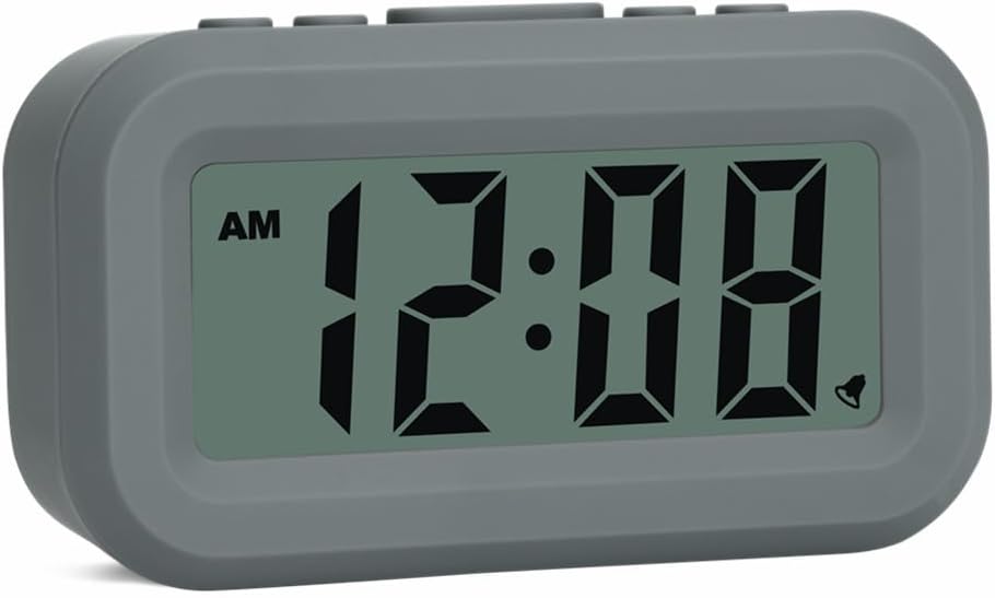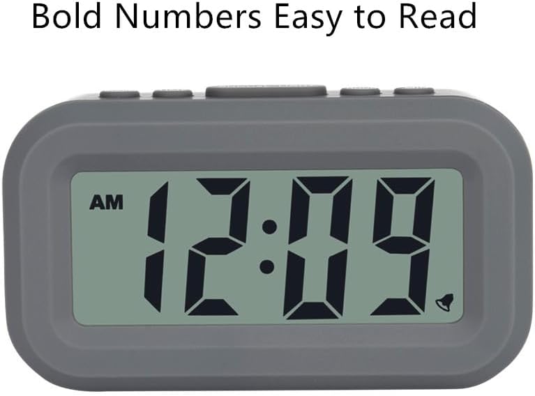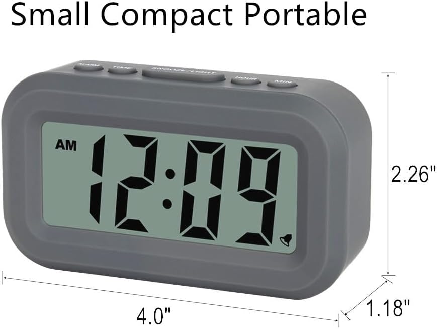 FAMICOZY Small Digital Alarm Clock,Easy to Read,Simple Operation,Constant Backlight On/Off,Crescendo Alarm,9 Min Snooze,12/24Hr,Bedside Travel Alarm Clock,AAA Battery Operated,Grey