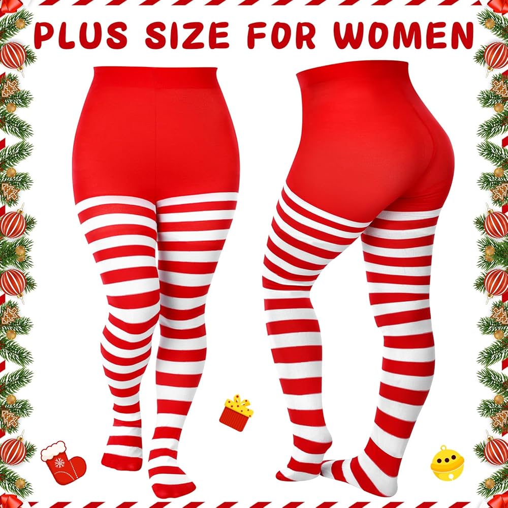Ideally Sized for Comfort: our striped tights are designed for helping the plus size women out there; The flat size of waist is about 12.6 inches/ 32 cm, and the leg is about 5.12 inches/ 13 cm, fitting large body sizes and shapes; The stretchy feature ensures that they hug your legs in the right places, offering a comfortable and appealing fit