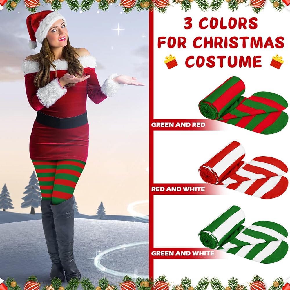 Christmas Striped Tights: enjoy a season of comfort and style with our package offering 3 pairs of Christmas tights for women; They are nice additions to your Christmas wardrobe and enough for you to rotate regularly or even share with your friends and family