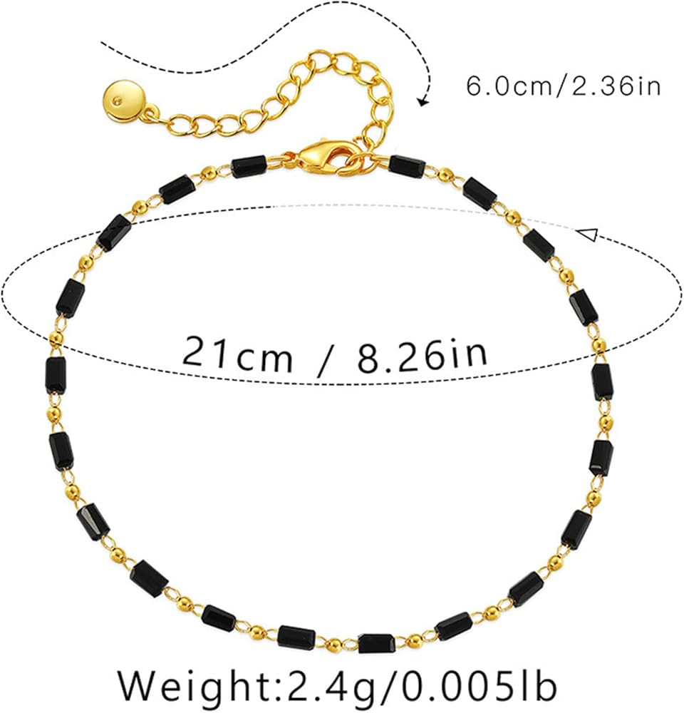 Black Crystal Beads Ankle Bracelet Boho Beads Chain Satellite Anklet Summer Beach Glass Beads Ankle Chain Barefoot Sandal Foot Jewelry for Women