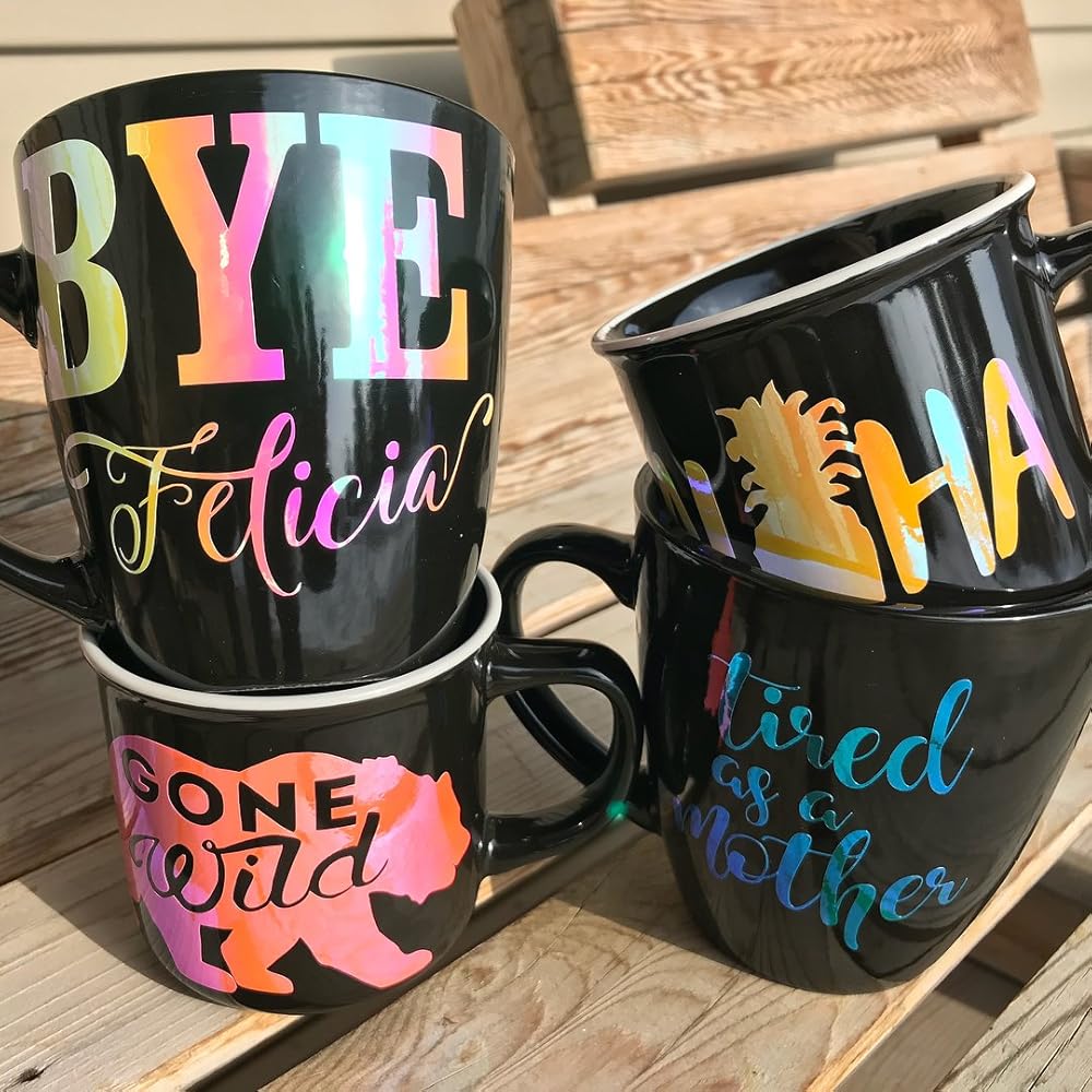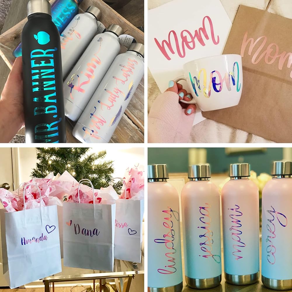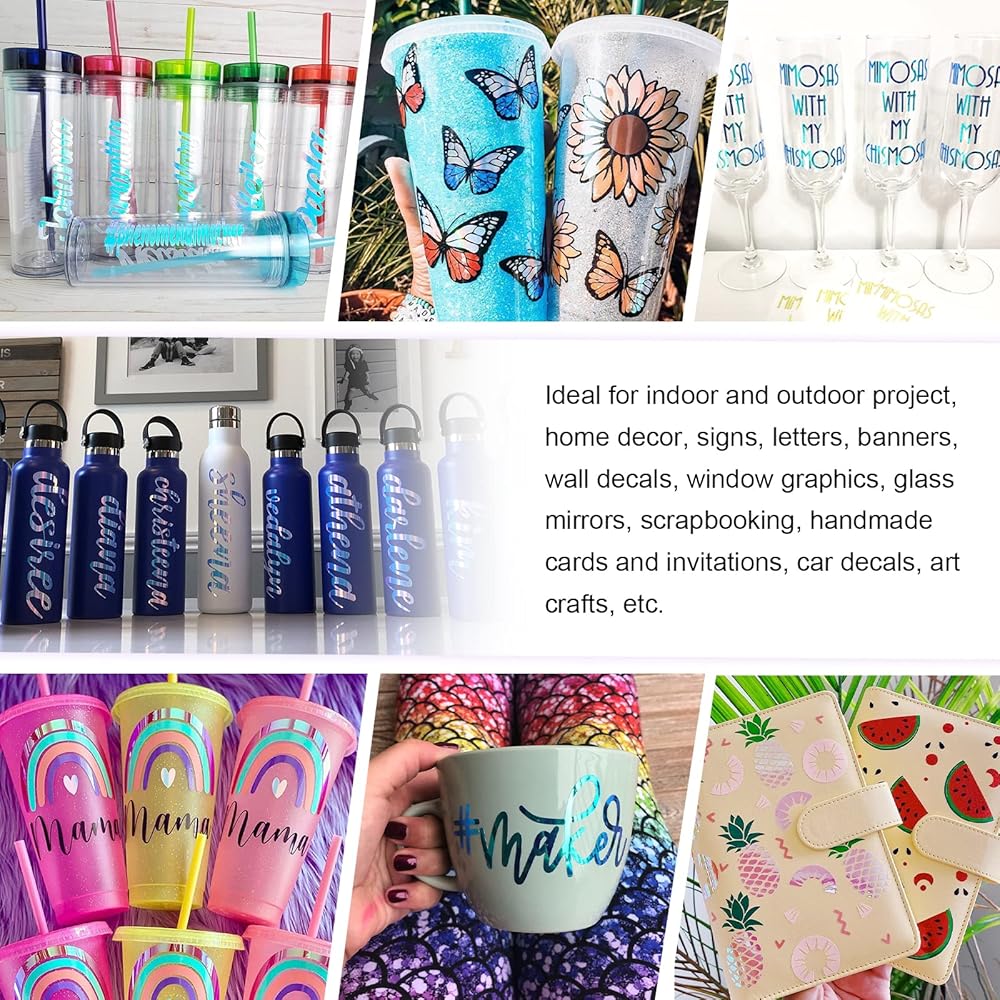 TECKWRAP holographic chrome adhesive craft vinyl, 12” X 12” per sheets, 33 amazing colors for you to choose. Air release technology and PET backing ensures an easier experience every time. Holographic chrome vinyl is with a layer of protective film(REMOVE IT BEFORE CUTTING).