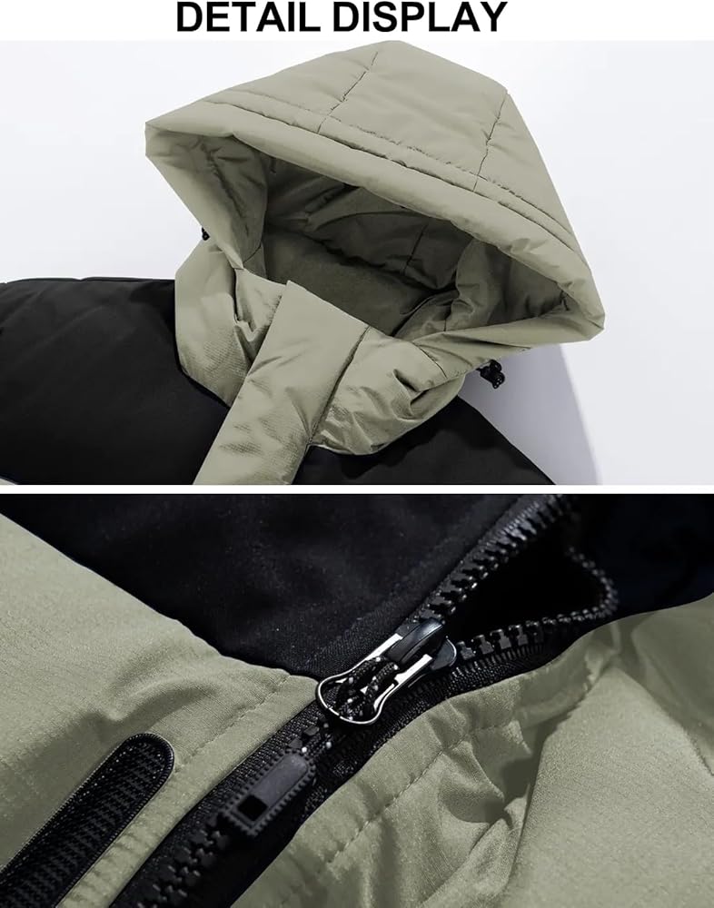 Practical Pockets: Warm padded jacket with hood for men has a pocket on each side of the waist, which is not only deep but also has a zipper, making it easy for you to carry your cell phone, wallet, keys, etc.