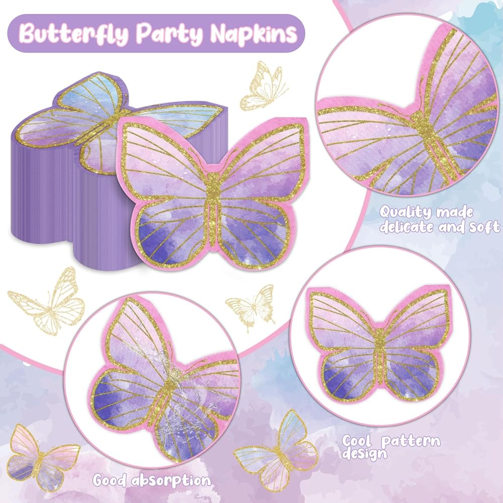 High Quality - Made from high-quality paper, these butterfly theme napkins are not only decorative but also durable and absorbent.