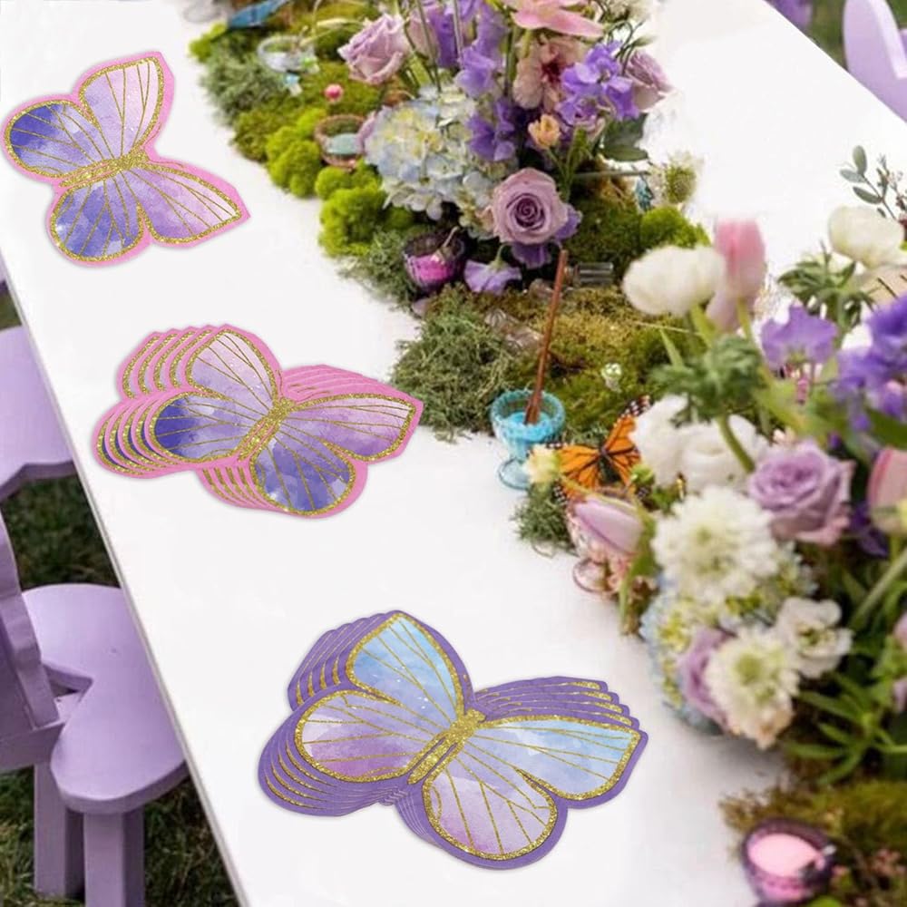 Elevate your party with our 100 pcs purple butterfly napkins!