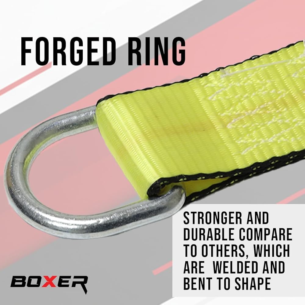 [CUSTOM ASSEMBLED STRAP] Boxer offers a custom color strap where the primary is yellow with a custom black trim. Rubber Handle Ratchet Buckle and Snap Hook for added versatility and applications. The ergonomic handle is wide enough, allowing you to easily tie down your vehicle securely and safely.