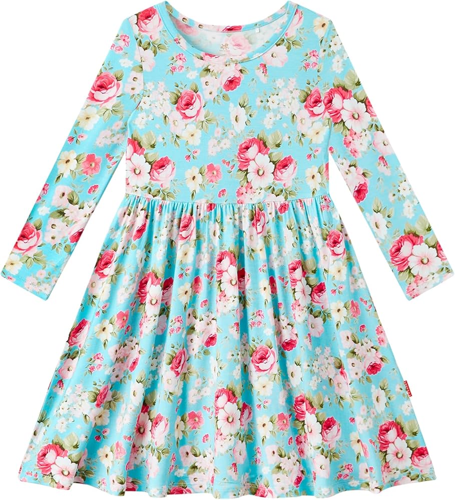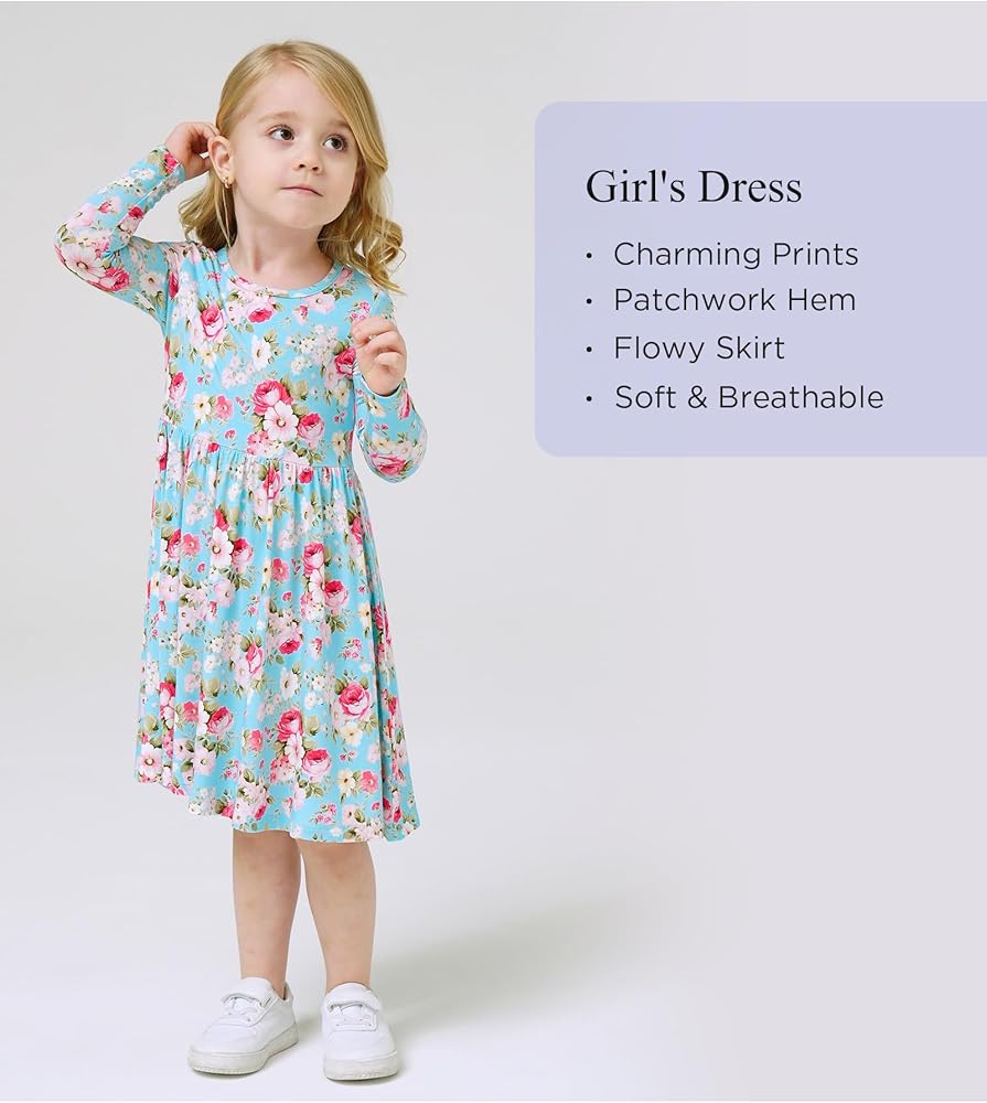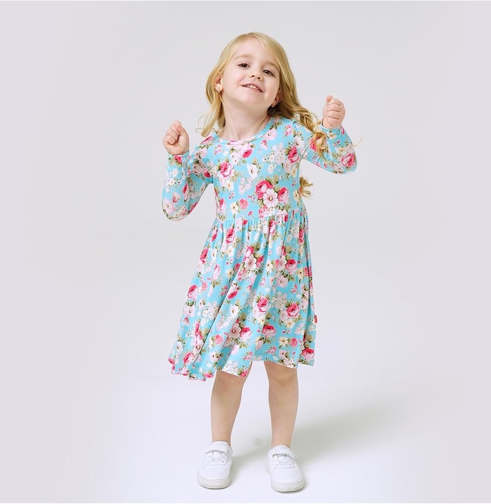 Charming Prints: With vibrant colors and eye-catching prints, your little one will stand out in the crowd, becoming the center of attention wherever she goes and shining like the star she is. This twirl dress features elegant long sleeves, making it a perfect choice for any season, allowing your toddler to wear it comfortably year-round