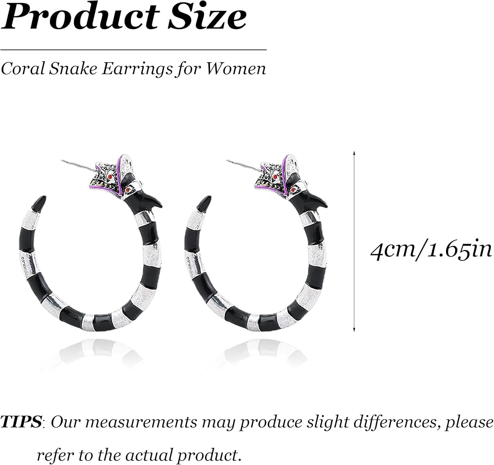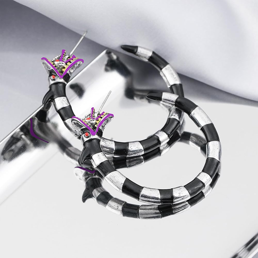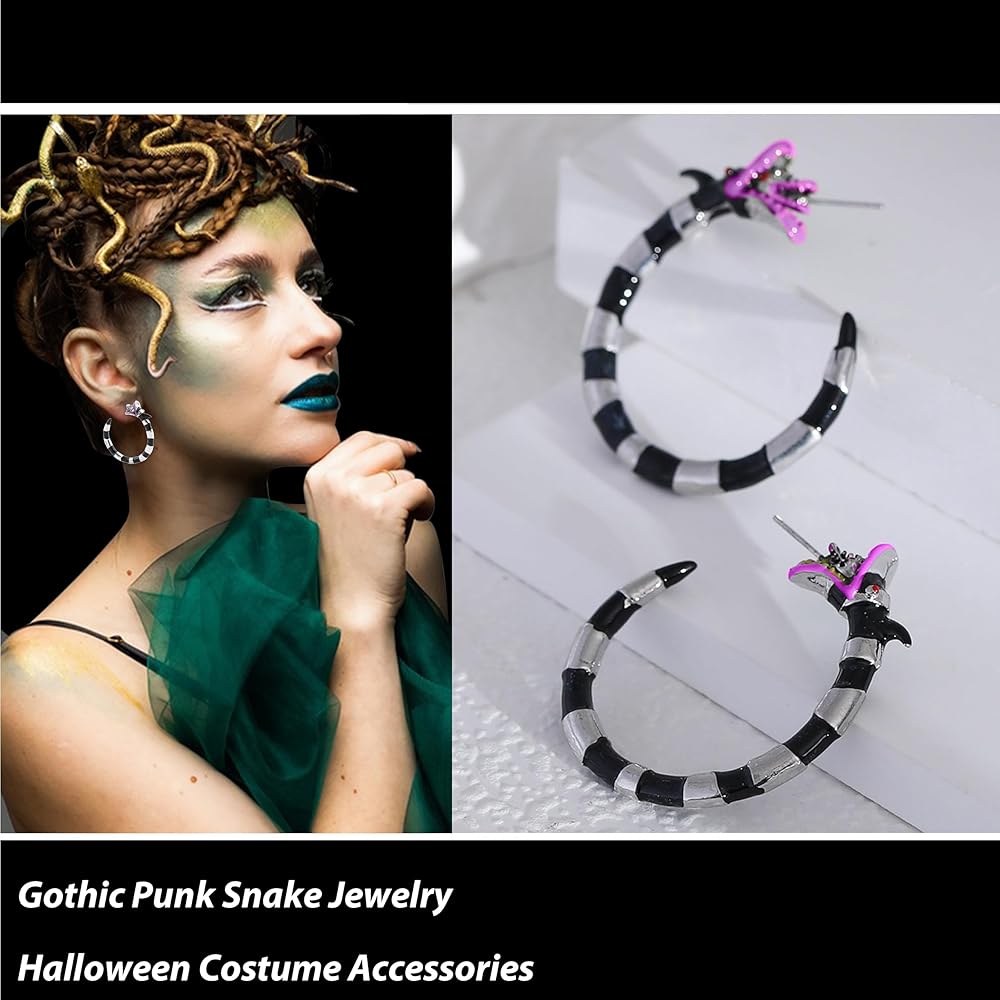 GOTHIC EARRINGS: Crafted with meticulous attention to detail and using high-quality materials, our Halloween Coral Snake Hoop Earrings promise durability and lasting shine, ensuring they remain a treasured Halloween accessory for years to come