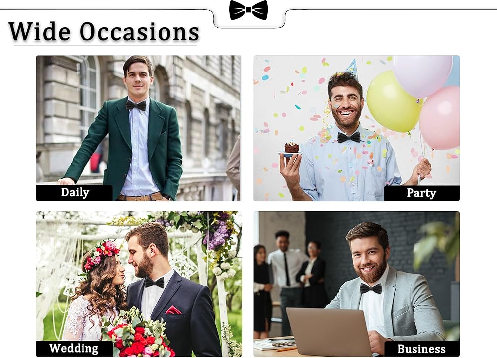 【CARE INSTRUCTION】Gently hand wash with lukewarm water and allow to dry naturally. With proper care, these pre-tied bow ties are durable and can last a long time.