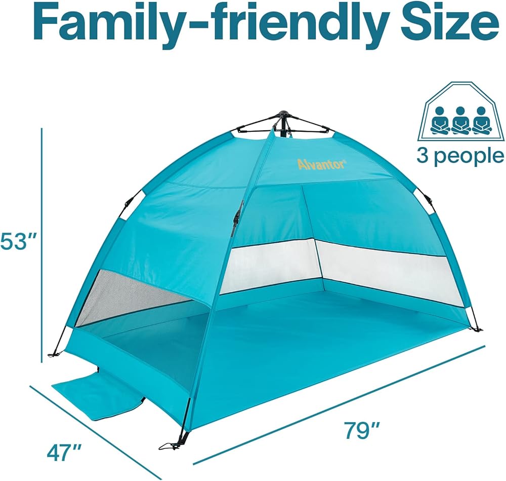 ☀استخدام متعدد الاستخدامات: يبلغ مقاس خيمة الشاطئ هذه 79 بوصة × 47 بوصة × 53 بوصة ارتفاعًا والتي تناسب بشكل مريح 2-3 أشخاص من العائلة. تستخدم كمظلة أو مظلة للشاطئ أو خيمة شمسية، يمكنها توفير ظل رائع طوال اليوم في الحديقة أو الشاطئ أو البحيرة أو التخييم أو التنزه سيرًا على الأقدام أو صيد الأسماك أو رحلة عطلة نهاية الأسبوع أو الأحداث الرياضية أو المهرجانات الموسيقية أو لمجرد الاسترخاء في الفناء الخلفي.