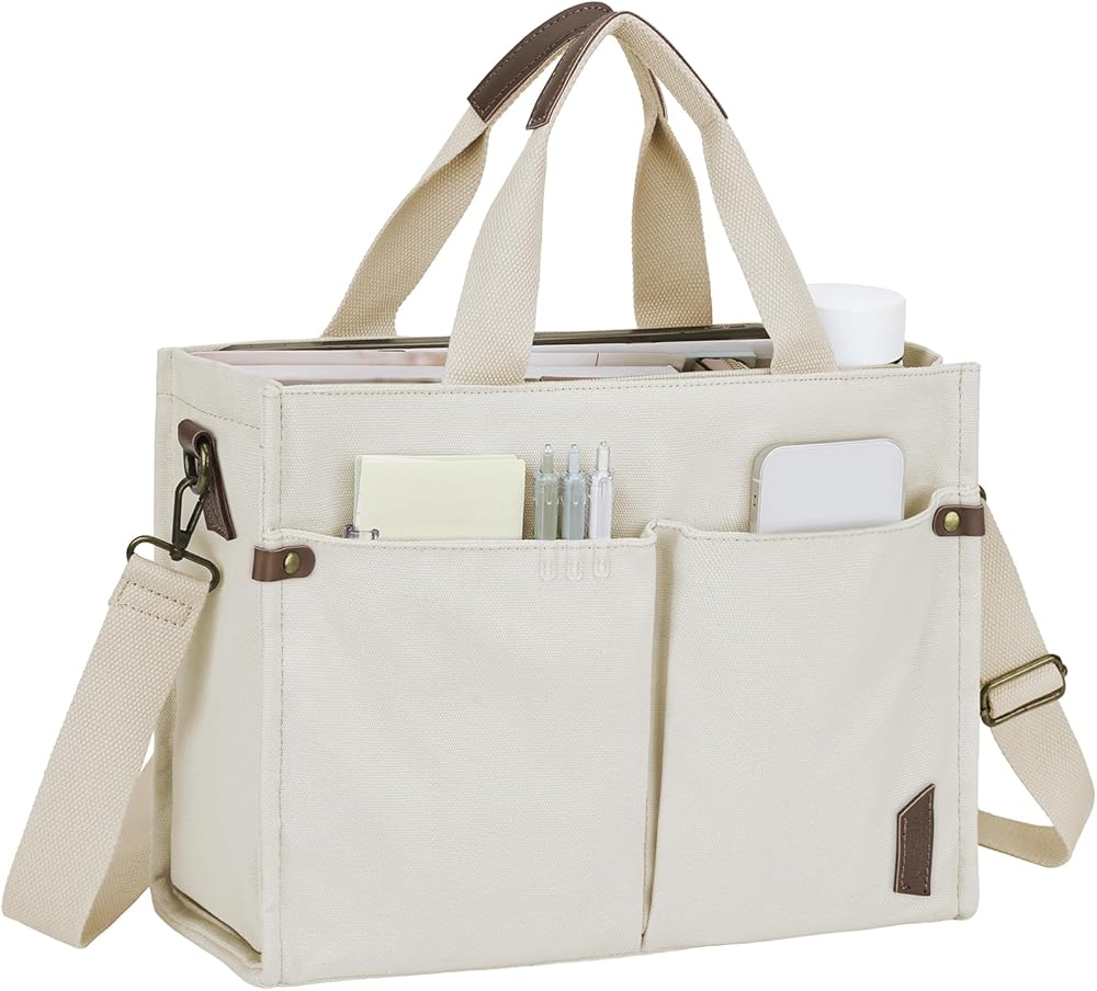 ⭐IDEAL GIFT CHOICE: Perfect for everyday use at work or on special occasions, this canvas tote satchel handbag makes an ideal gift for ladies who appreciate practicality, style, and quality craftsmanship. Its neutral solid shade makes it easy to match with various outfits, adding versatility to any wardrobe.