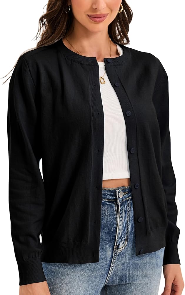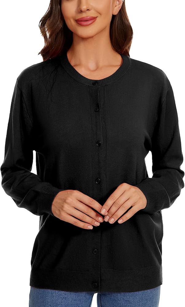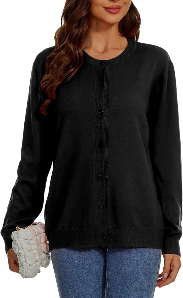 【Design】:Classic trendy cardigan sweaters for women,casual style,solid/plain color,button-down front,crew neck,long sleeves,ribbed bottom hemline and sleeve cuffs.