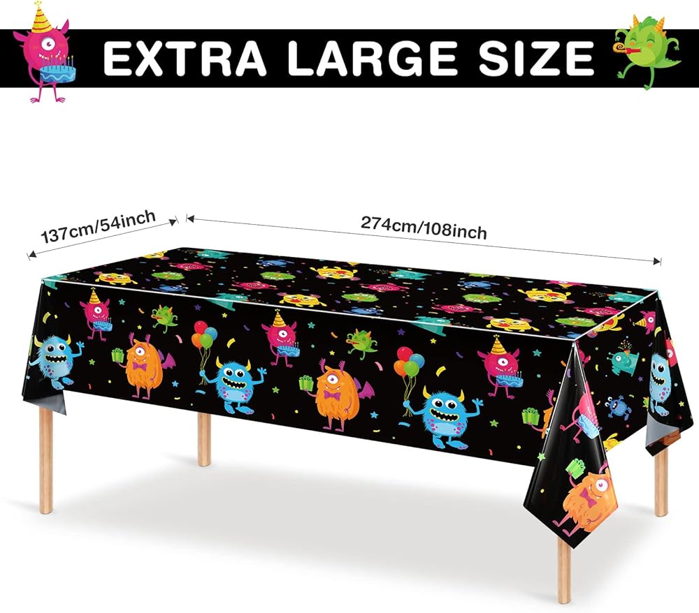 Package Includes: you will get 3 pieces monster birthday party table cloth, each measures about 54 x 108 inch, large enough for most rectangle tables, great for indoor and outdoor use, unique decor for your party, you can also share with your others