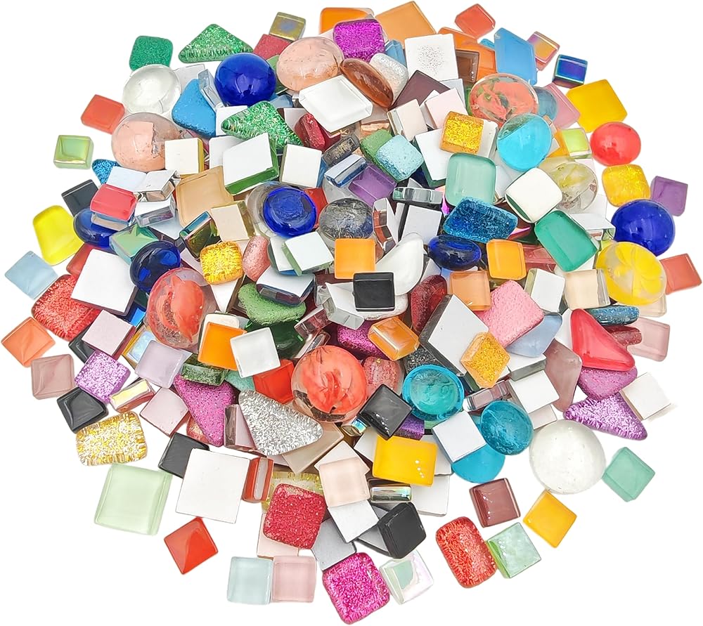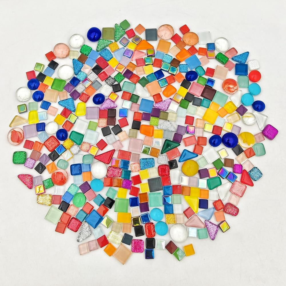 Iridescent Mixed Color Mosaic, composed of crystal glass material, featuring smooth corners that do not cause harm to hands and without adhesive.