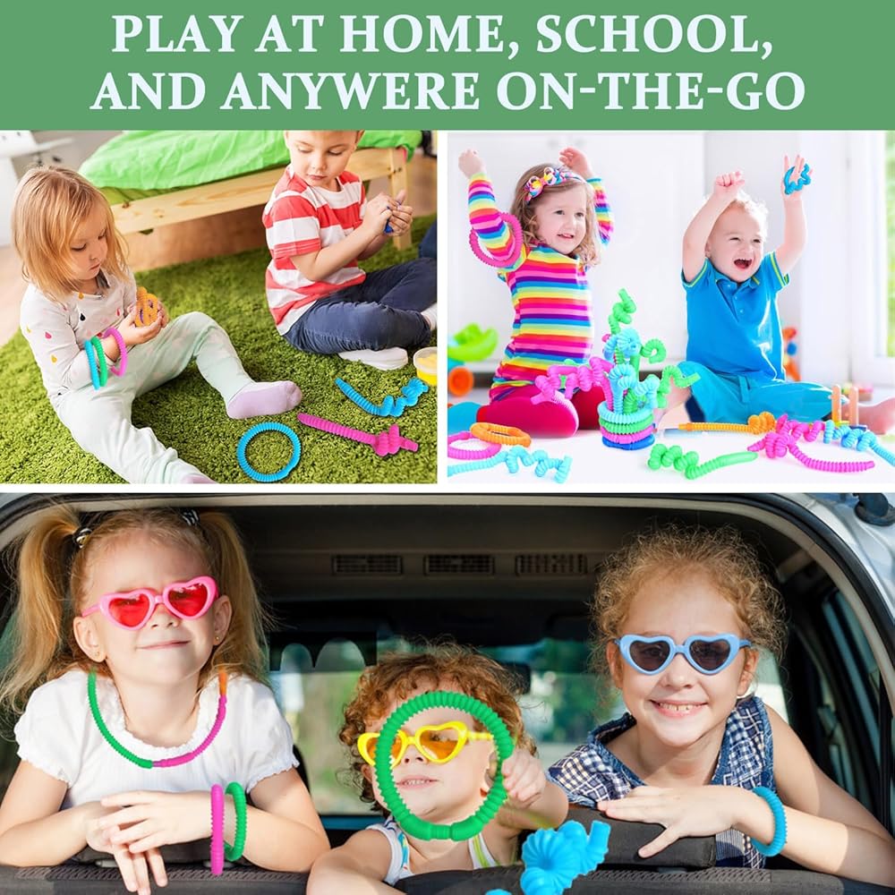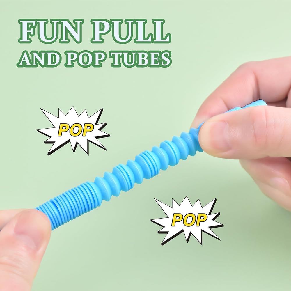 【Fun Pop Tubes Fidget Toys】: These sensory toys provide tactile and auditory stimulation and emit satisfactory popping sounds. The vibrant colors, smooth ridges, and satisfying crinkly noise are great. Our Pop Tubes are guaranteed to be a favorite toy in your home.