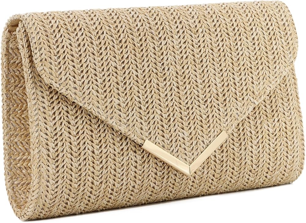 Design: It is very lightweight and easy to carry, elegant and fashionable. Combining a classic straw design with a detachable long chain, providing versatility used as clutch, crossbody bag or shoulder bag. Great for summer beach, resorts, travel, party, formal events or every occasion.