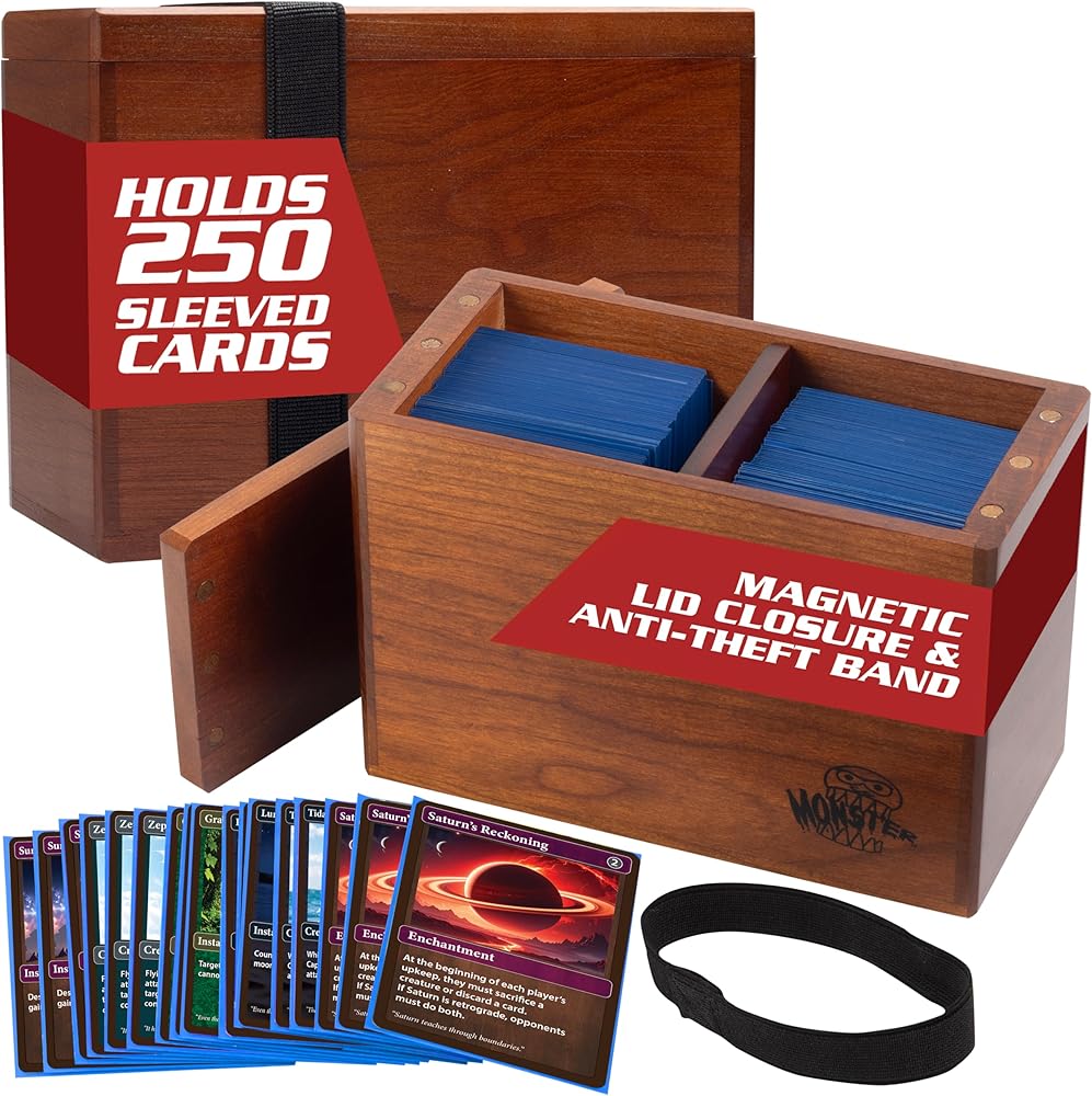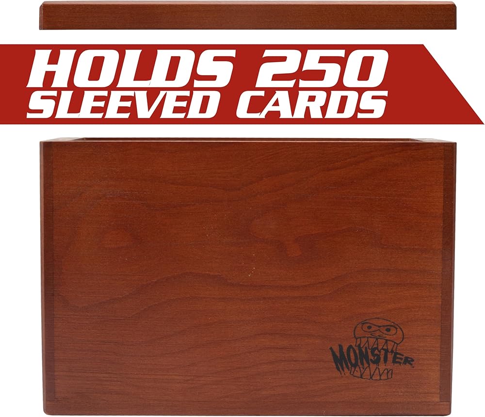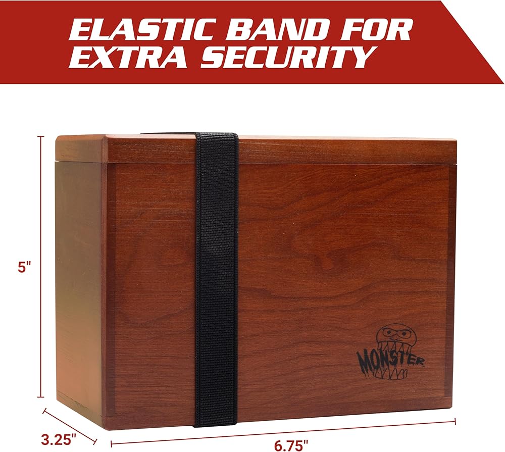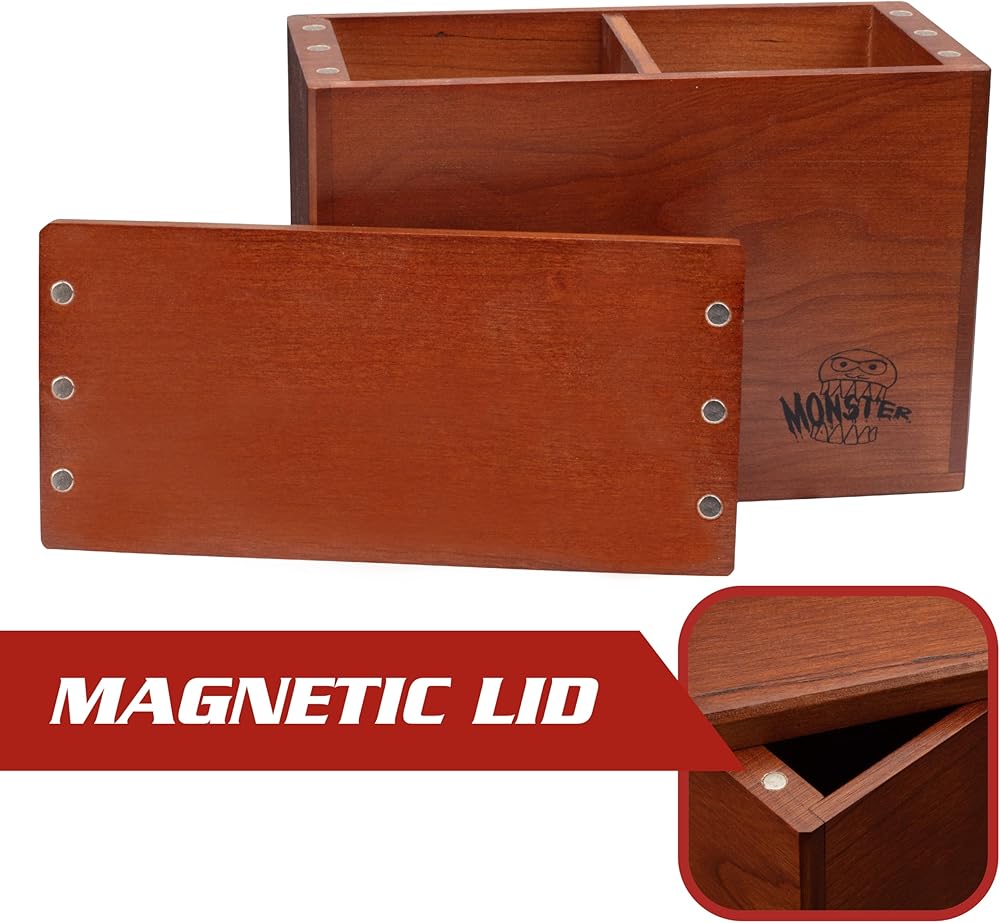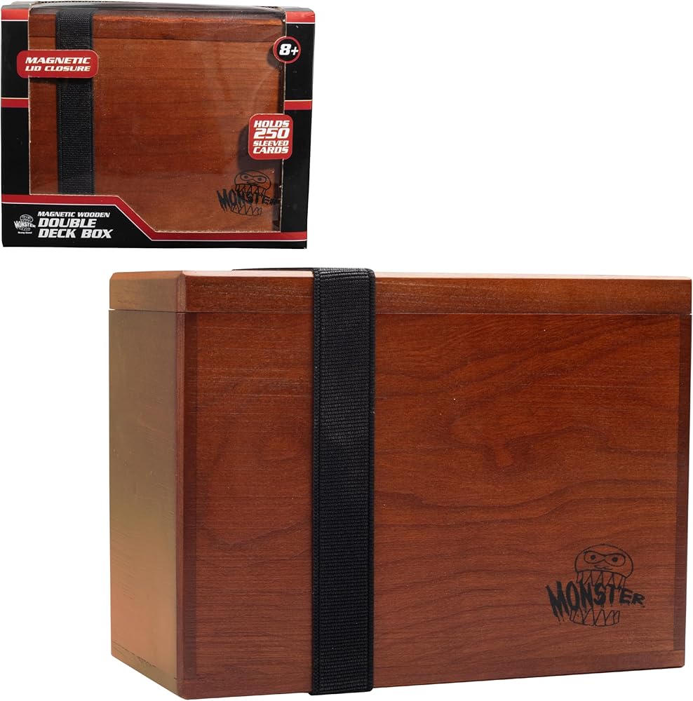 Monster Wooden Double Deck Box w Strong Magnetic Lid & Security Band- Premium Holds 250 Sleeved Cards- Compatible with All Trading Major TCG Games, Gift