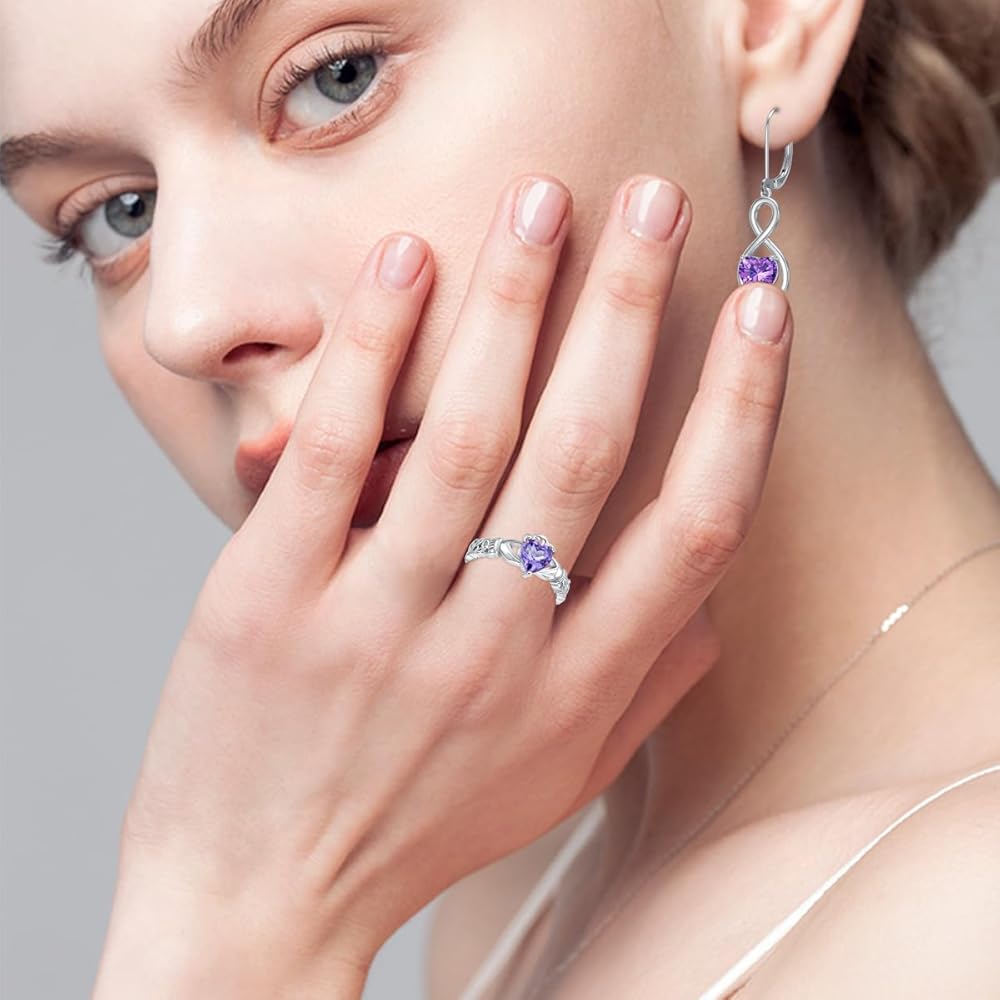 ❖Unique Original Design❖:This amethyst ring is is inspired by Irish traditional culture,the Claddagh Ring means “With my hands I give you my heart, and crown it with my love” and “Let love and friendship reign forever”, which make this claddagh ring a perfect gift for the cared-one.