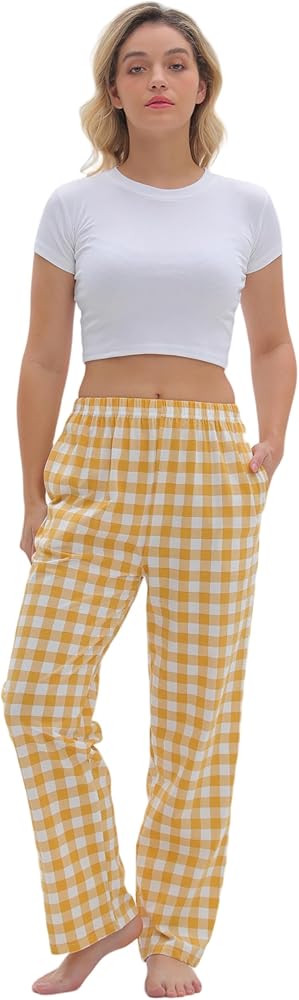 {Soft & comfy pajama pants women} Made by 100% cotton material, soft, cozy & breathable. Fit all-weather sleep pants, homewear bottoms.
