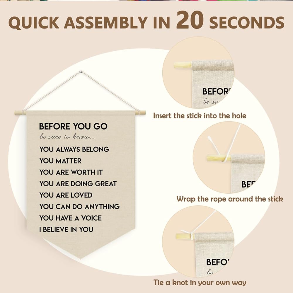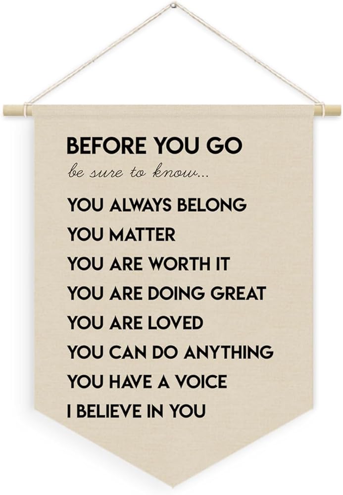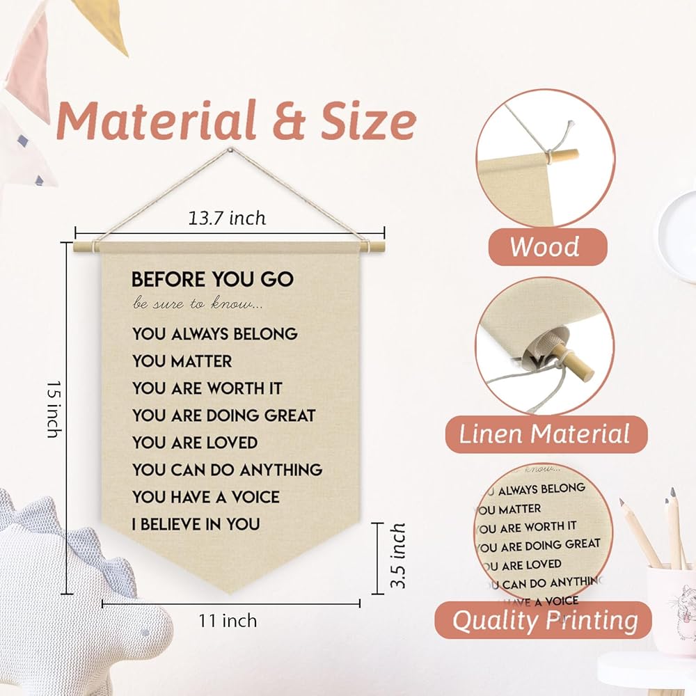 Inspirational Wall Art, Motivational Wall Decor Before You Go Be Sure to Know Linen Canvas Banner, Mental Health Office Wall Hanging Pennant Flag Banner for School Counselor Office Must Haves, 15x11in
