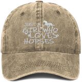 💗【Material】: Just A Girl Who Loves Horses Hats is Made of 100 Percent Cotton, the Fabric is Soft, Skin-friendly and Lightweight. And a Soft Feel Bring Both Luxury and Comfort to Your Day. It is the Perfect Companion for Your Active Lifestyle. This is a gift for horseback riding enthusiasts