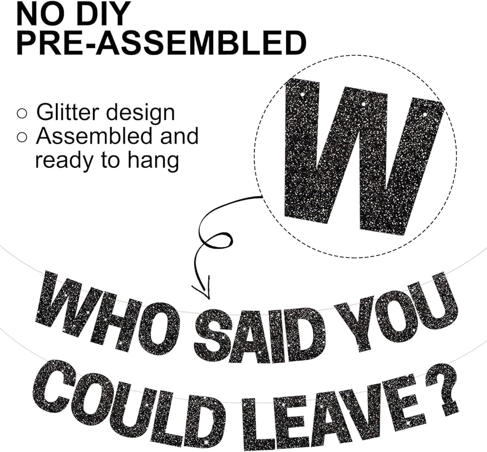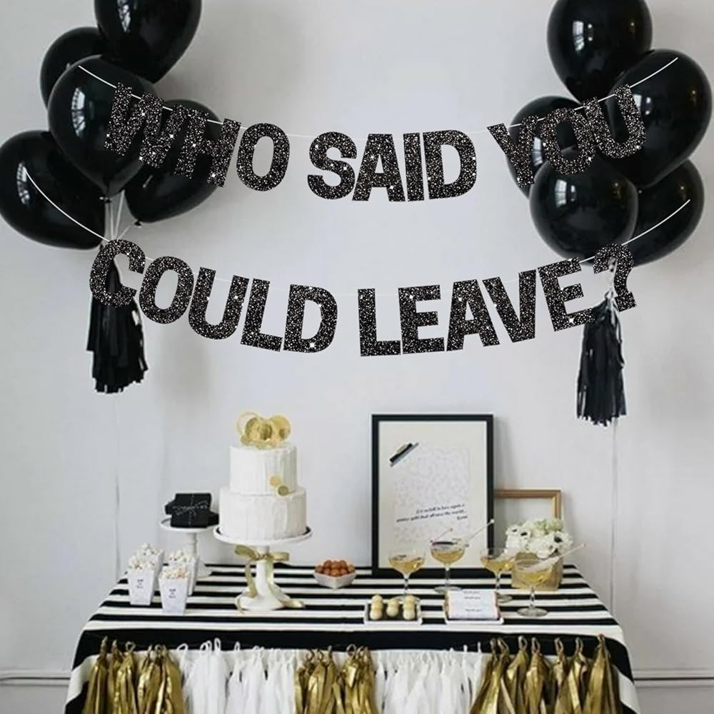 BEISHIDA Black Who Said You Could Leave Banner,Pre-Strung Glitter retirement party decorations,going away party Sign Garland, Farewell Party Supplies, graduation banner (No DIY)