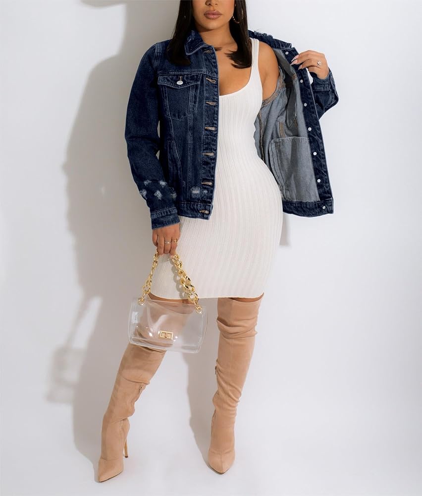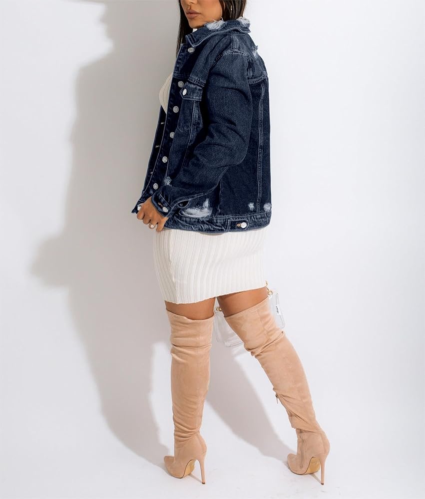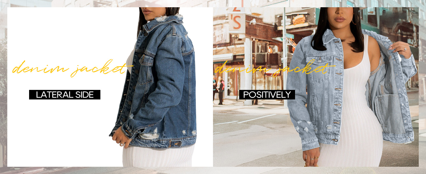 MATERIAL: Fitted Denim Jacket For Women Blending Cotton And Polyester Achieves Comfort, Durability, Style And Easy Maintenance, Making Ripped Jean Jacket A Versatile And Practical Wardrobe Essential.