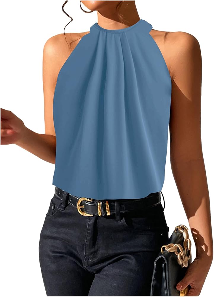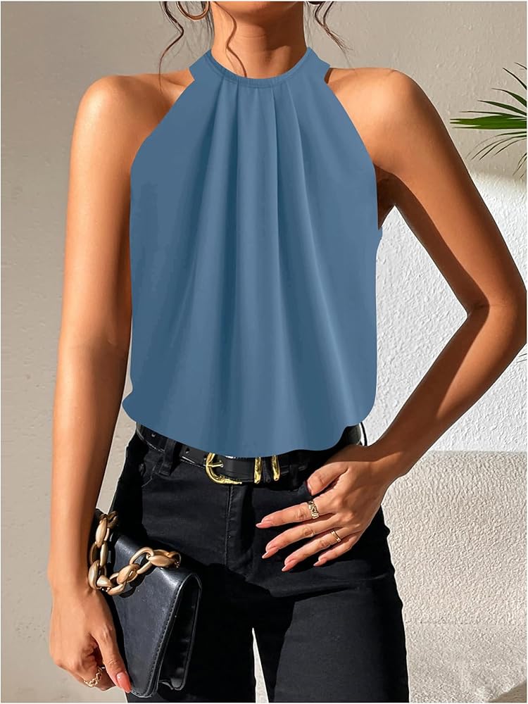 Features: Sleeveless, button back, regular fit, trendy blouse for women, easy to pair with jeans, pants, shorts, etc