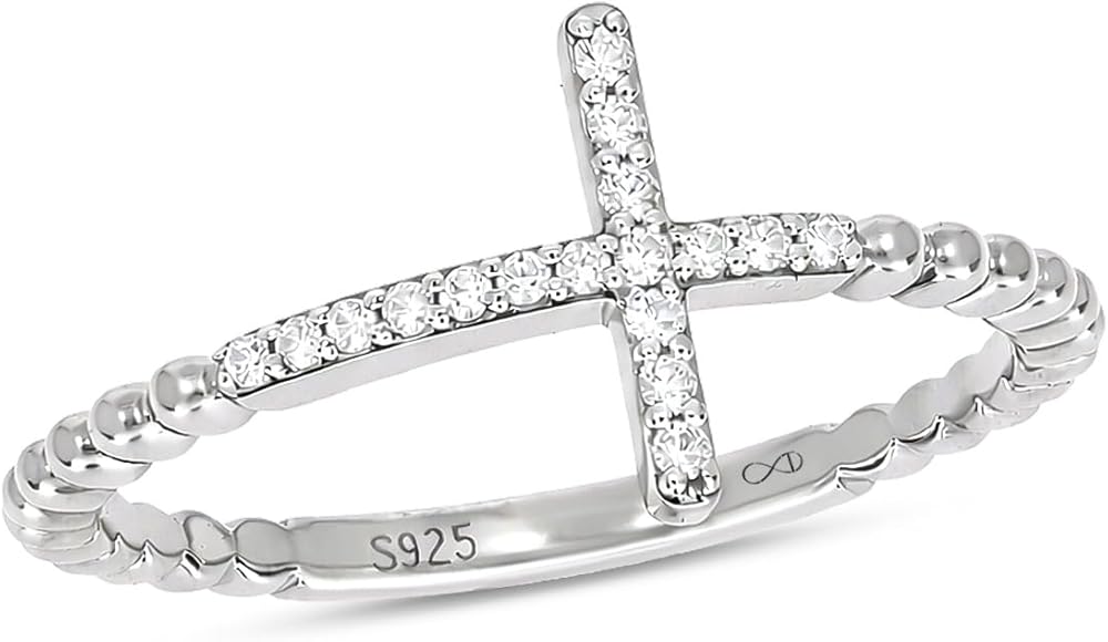 18KT Gold Vermeil Diamond Horizontal Cross Rings For Women: Crafted in pure 18KT Rose Gold Vermeil plated 925 Sterling Silver, these are diamond rings for women, which can also be worn as everyday rings, feature 1/10 carat natural real diamonds. These cross silver rings make an ideal faith-inspired accessory for women as a religious or a statement fashion ring.