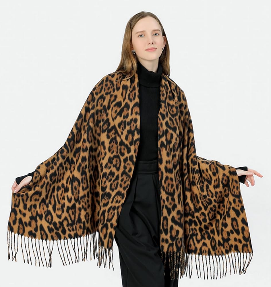 4) Fashion leopard pattern tassl scarf bring out a bit color to your dull winter clothes. It's suitable for both casual wearing in daily life and outdoor activities.