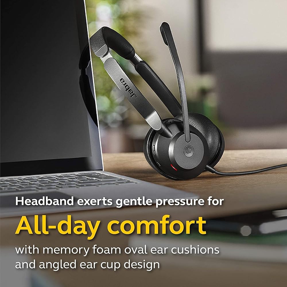 Jabra Evolve2 30 wired headset opens doors to enhanced comfort, seamless collaboration, and instant concentration anytime, anywhere. When time is of the essence, great quality audio is essential. This office headset features professional-grade 28mm speakers and an advanced digital chipset to deliver exceptional audio quality. Plus, with our advanced 2-microphone audio system, this telephone headset will capture your voice while simultaneously analyzing and reducing noise around you. It's a sophisticated microphone headset that will help you get your point across and ensure even the smallest nuance isn't lost in translation. Plus, this mic headset automatically knows when you need peace and quiet. An integrated busylight turns on automatically when you're on a call or you can turn it on manually to signal ‘do not disturb' mode. To get ahead, we measured heads. Hundreds of them. Then we used that data to design the perfect shape using biometric measurements. The result is a call center headset that's been ergonomically designed to exert just the right amount of evenly distributed pressure for all-day comfort. Built with premium materials, the soft memory foam ear cushions mold to your ears natural contours to create a work headset that won't weigh you down. ‘Satisfaction guaranteed' isn't something you hear very often these days, but we're bringing it back; this Jabra headset works with all leading Unified Communications (UC) platforms and is Microsoft Teams certified with a dedicated Teams button for truly seamless collaboration. It's a teleconference headset that works out of the box with Zoom, Google Meet, Chime and more. Simply unbox, plug in and go. As far as things in boxes go, this is kind of a big deal. Before you've even unboxed it, you're holding a pioneering piece of tech that's leagues ahead of any other pro headset. But because we have one eye on the future, firmware upgrades and value packs are already on the way to boost it even further.