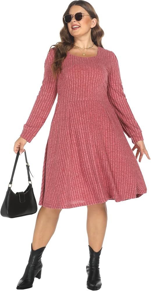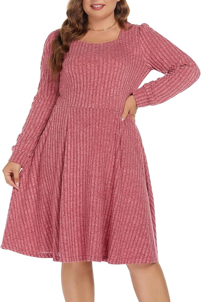 Plus size square neck dress-You can also search for plus size Christmas dress/cocktail dress/new years eve dress/birthday dress;It has a certain thickness and can keep out the cold.It is suitable for home or outdoor wear in autumn and winter.If you still feel cold, you can wear it with any of your coats, and it's still beautiful.