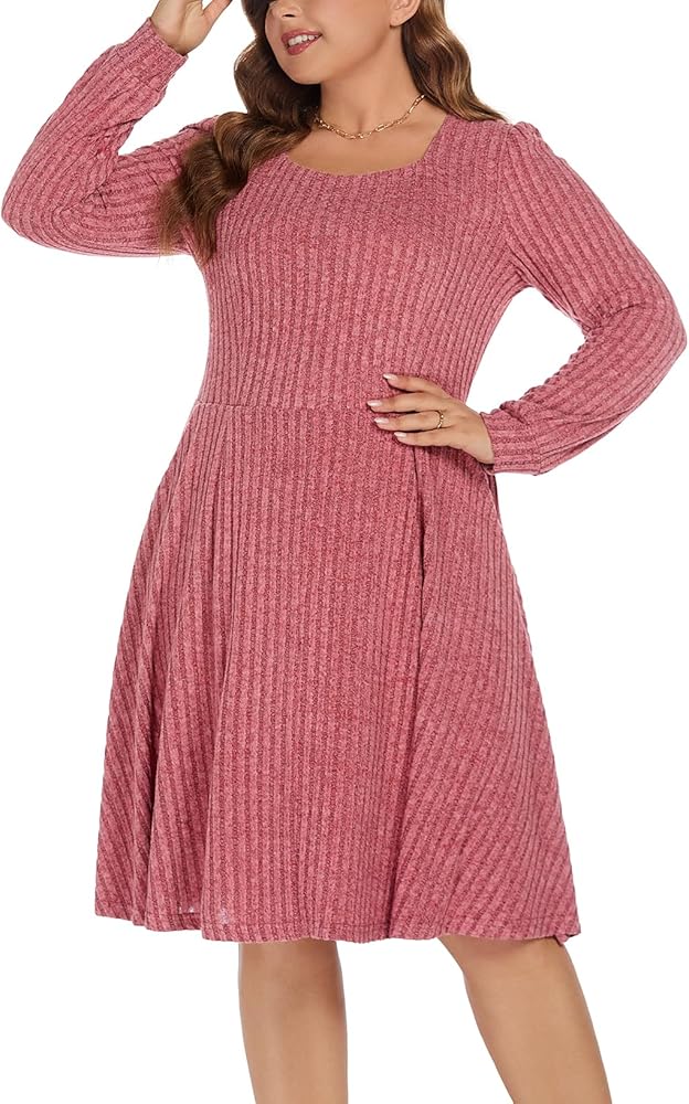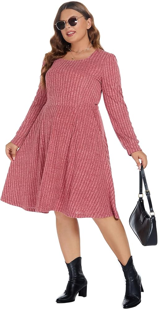 Plus size long sleeve dress-It is stretchy and lightweight.Super soft and comfortable to wear,plain and simple, casual style,the colors are really vibrant,give you an excellent touch,which is perfect for fall and winter.