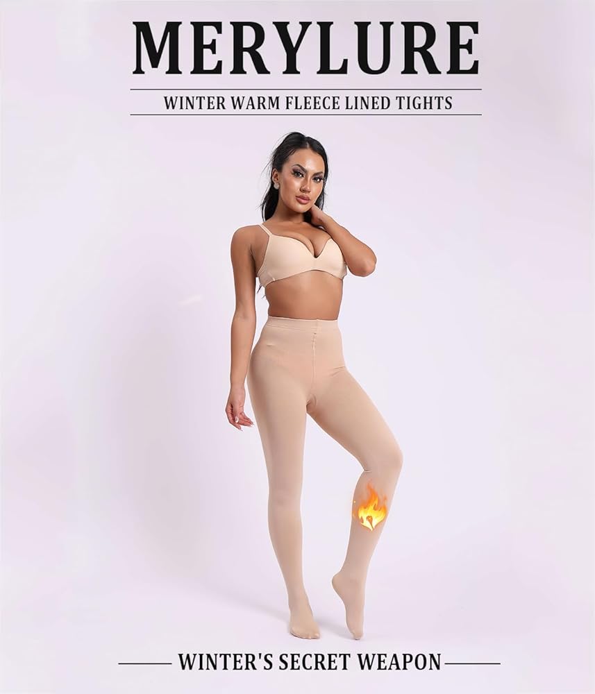 ✔ HIGH WAISTED DESIGN - MERYLURE fleece lined tights have a high waist design and super stretchy material, which gives it the effect of tummy shaping and control, butt lifting, and perfect legs. When you put on our warm thermal tights, you will show off a charming figure, sexy buttocks and perfect legs, and move freely as if you didn't wear it. You wear this warm pantyhose in autumn and winter, not only to show your sexy figure, but also to keep you warm