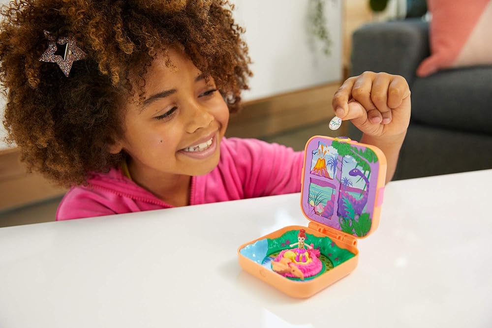 The Polly Pocket Lila Dino Discovery compact is dino-mite fun!