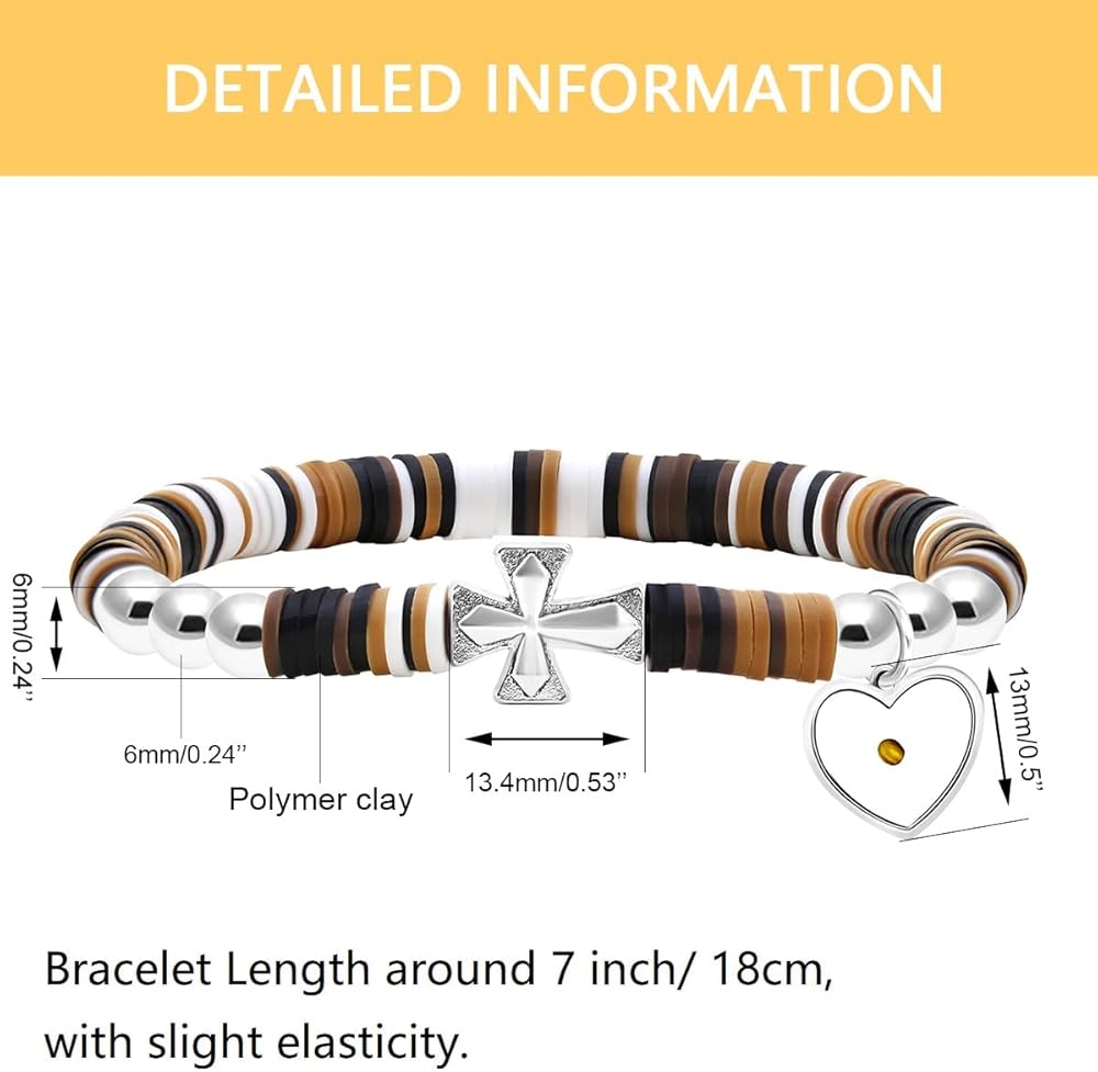 This polymer clay bracelet is a perfect choice for everyday wear,graduation, Mother's Day, Birthday, baptism, Christmas or just because.