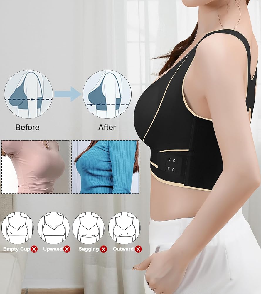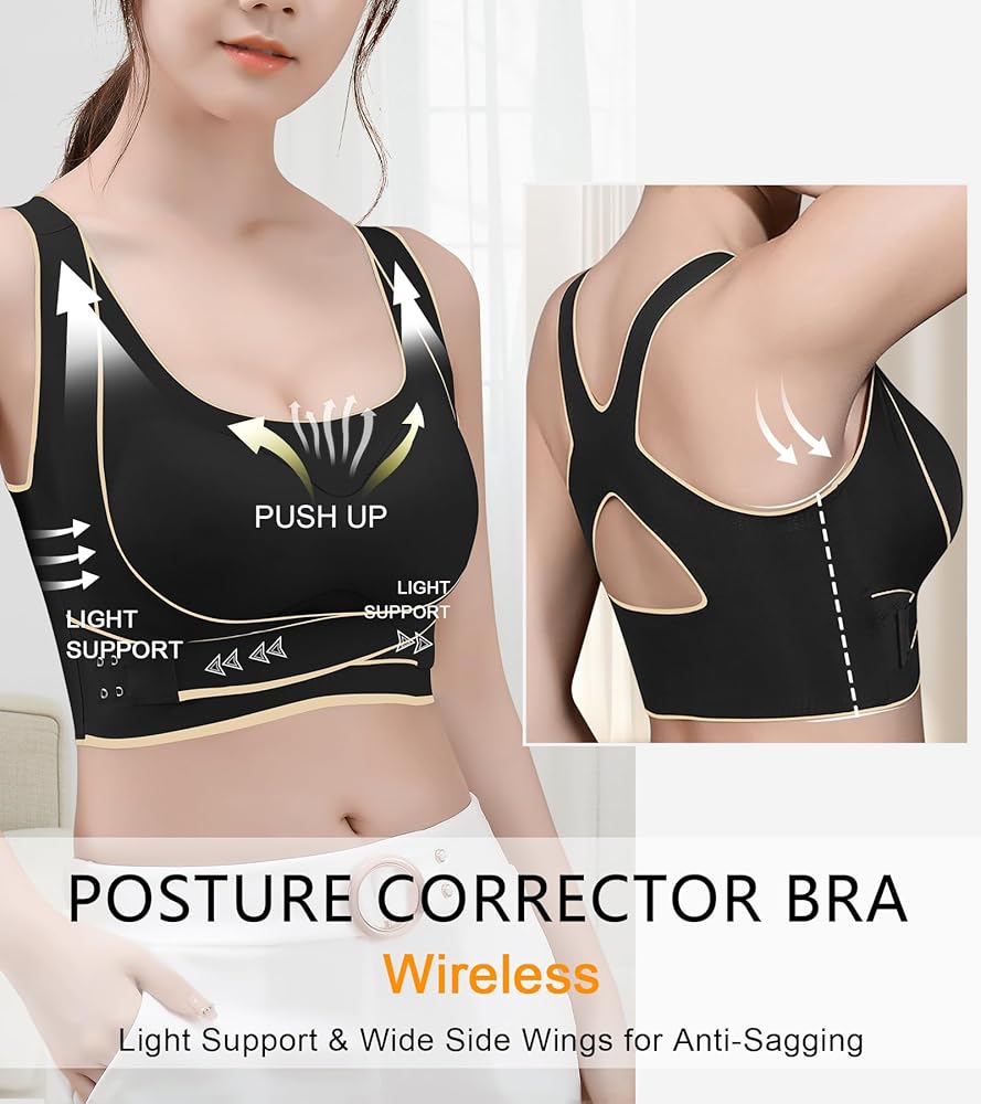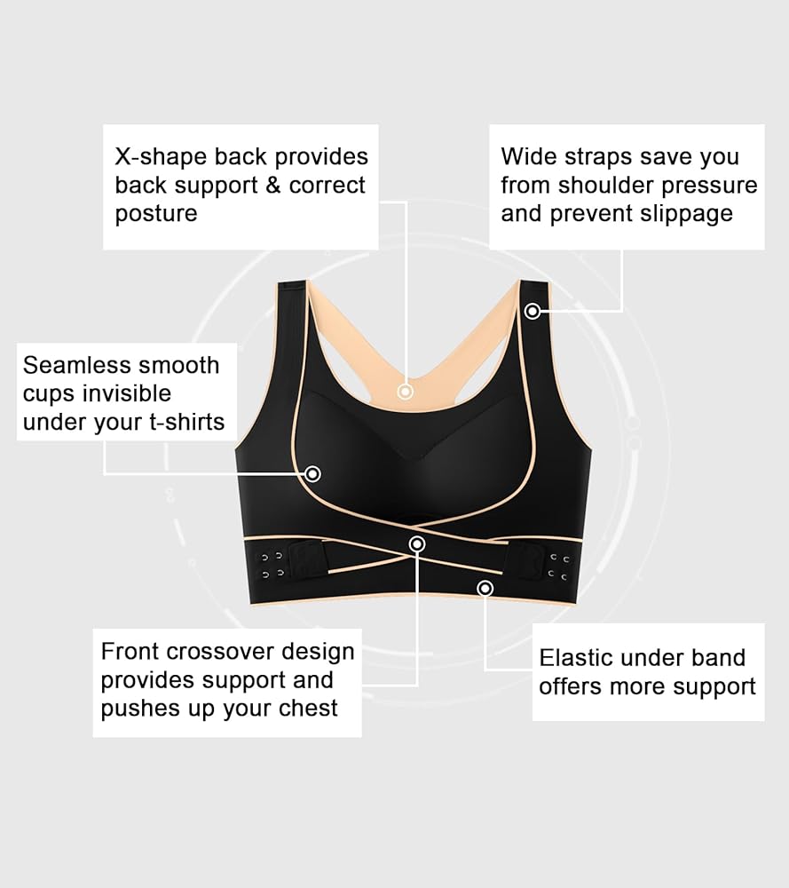 POSTURE CORRECTOR BRA - Front cross lifting straps with a smooth back design provide good support, pulling your shoulders back gently can slightly relieve back and shoulder pain. It keeps you a straight and streamlined silhouette and improves your posture for more confidence