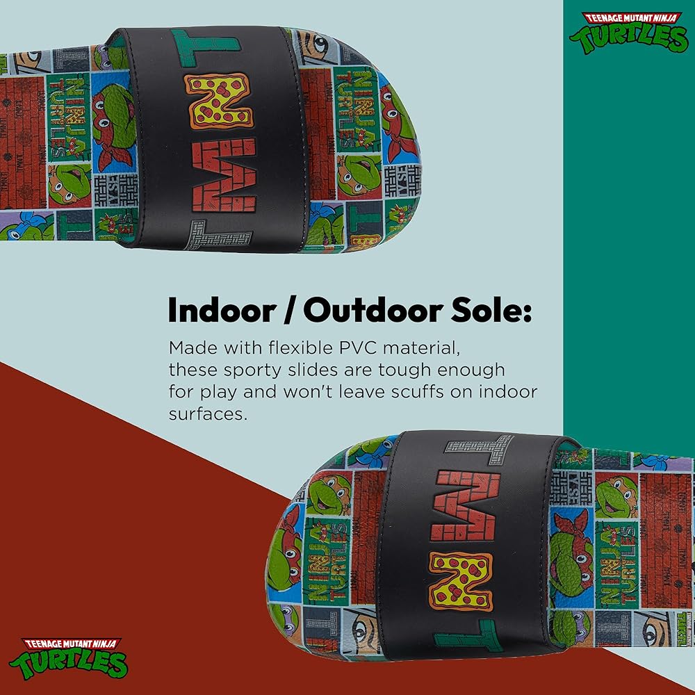 Get your fashion on with these slip on slide sandals featuring Nickelodeon's Teenage Mutant Ninja Turtles. Each shoe has a colorful print which your favorite Nickelodeon's Teenage Mutant Ninja Turtles poses.