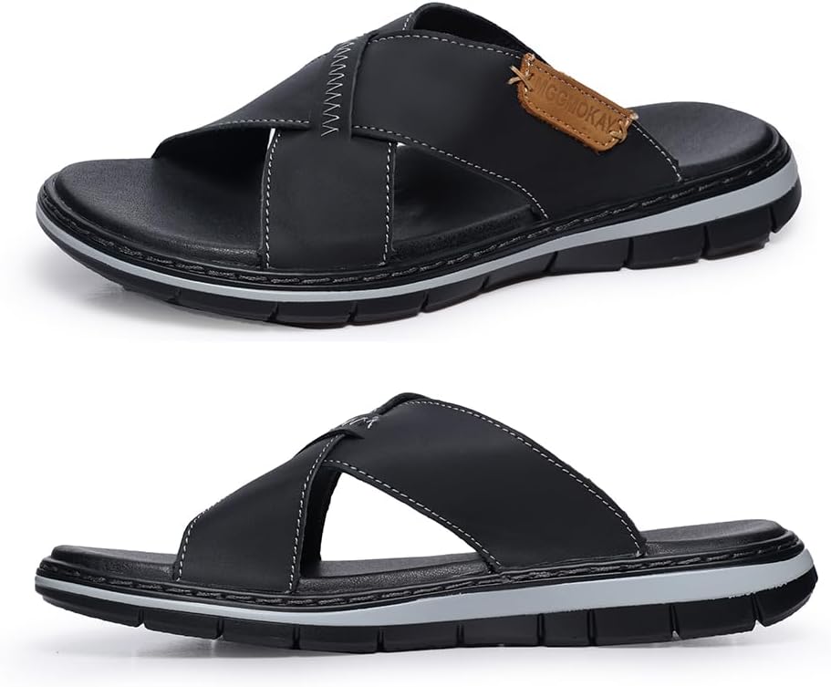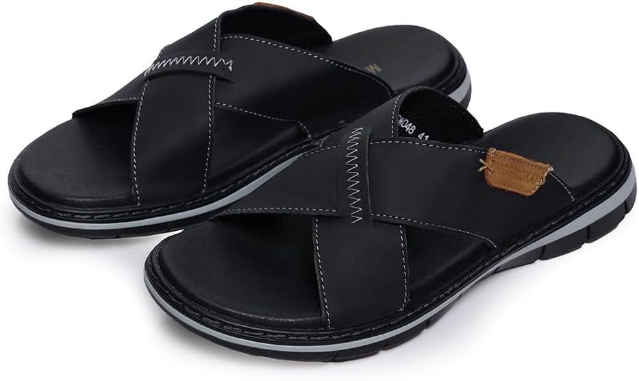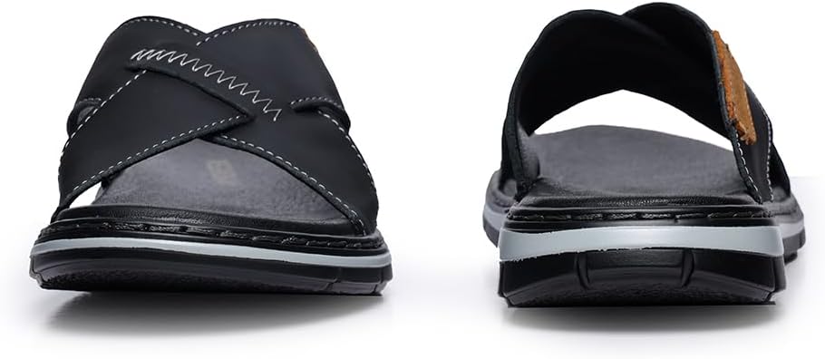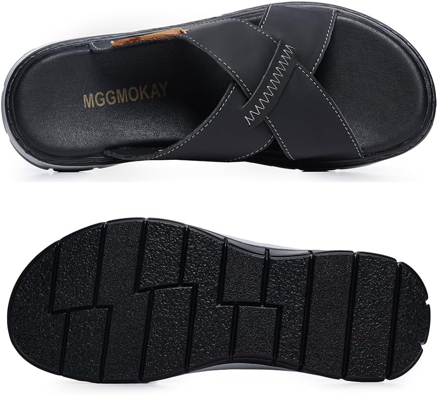Mens Cross Slides Sandals Summer Leather Slipper Anti-Slip Comfortable Sandals