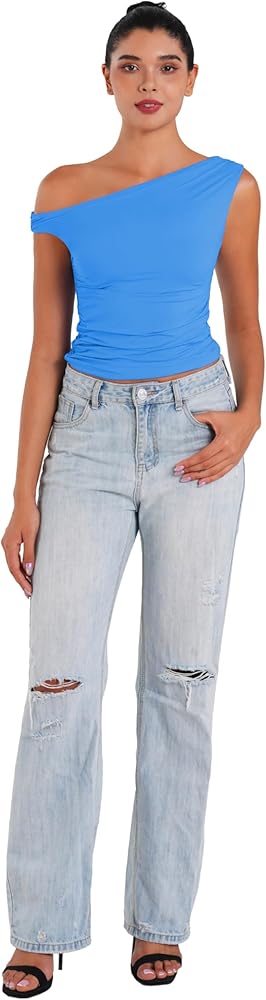 - Off-the-Shoulder Style: Features a sexy asymmetrical design, ruched boat neck, and one-shoulder fit.