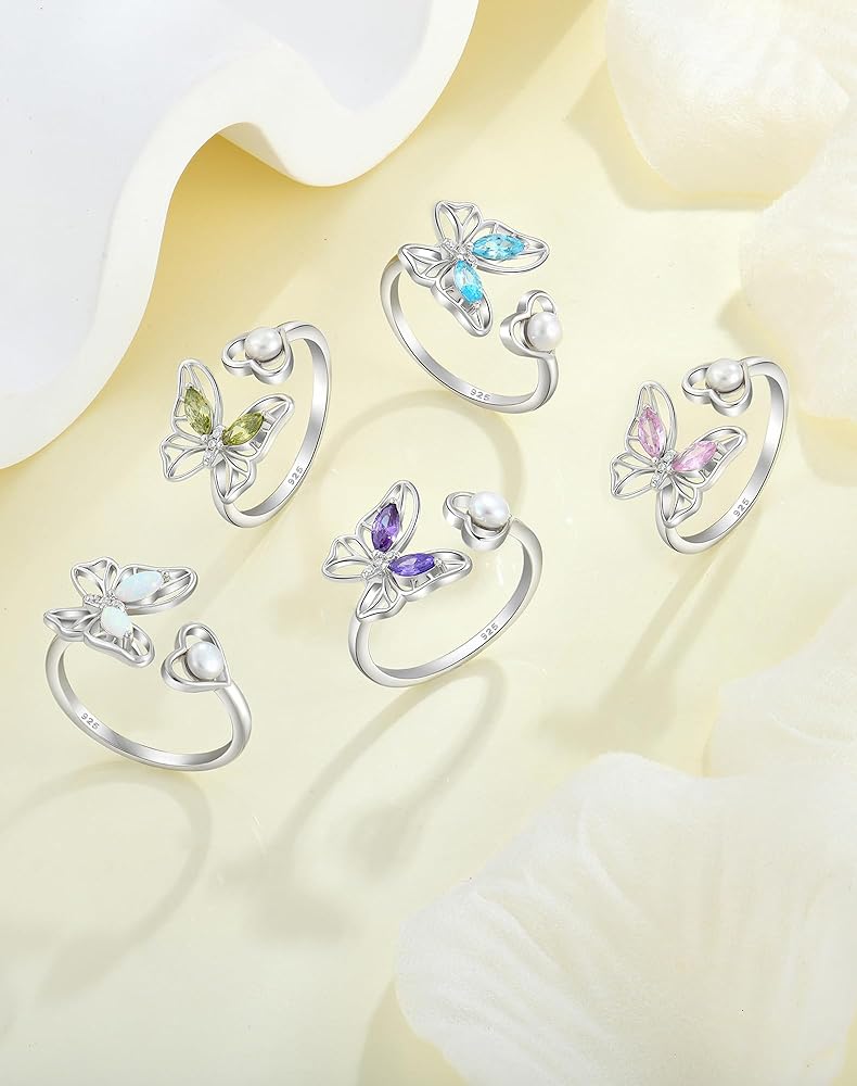 Stunning YL Design: Uncover the mystery of statement and eternity with the yl pearl ring for women. Exuding timeless charm, 2 pieces 5x2.5 mm mariquesa-brilliant-cut created purple amethyst, 1 piece 4 mm pearl and 3 pieces 1 mm 5A+ cubic zirconia are skillfully set in yl butterfly ring bands