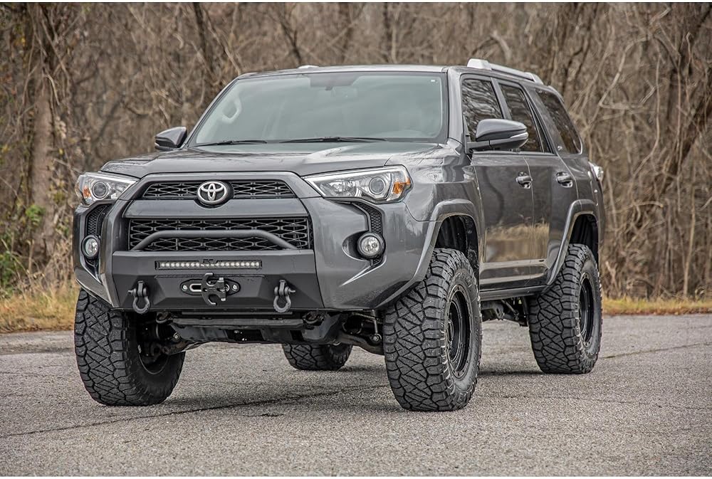 Superior Design. Rough Country's 3-inch Bolt-On Kit offers easy installation and aggressive good looks at an incredible value. Take your 4Runner to new heights with this excellent option for your fifth-generation Toyota 4Runner. Durable Components. This kit features a set of high-quality, lightweight, forged aluminum Upper Control Arms designed to make alignment adjustments easier and Clevite rubber bushings for enhanced durability. These arms are designed to promote a factory-like geometry by keeping the ball joint at optimum angles after lifting. This design allows for an improved, greater range of motion from the ball joint, with less stress, wear and tear. Rough Country's 3-inch Bolt-On Kit features N3 nitrogen-charged shocks, giving your truck incredible ride-quality both on and off-road. Also included are a set of N3 loaded struts and rear coil springs to provide lift height from front to rear. Once installed, this kit gives your truck plenty of ride height for larger tires while offering a clean, level look from front to rear. Installation. Rough Country's bolt-on 3-inch Bolt-On Kit are easy to install, 100% bolt-on, and require no drilling. Plus, they come with all the necessary hardware included. With an estimated install time of 3-4 hours, you can enjoy your new sliders in no time. Limited Lifetime Warranty. Rough Country's 3-inch Bolt-On Kit is backed with a limited lifetime replacement warranty towards manufacturer defects. As such, the product is protected from structural and workmanship damage after the date of purchase. With our industry-leading warranty, give yourself peace of mind when using Rough Country's products!