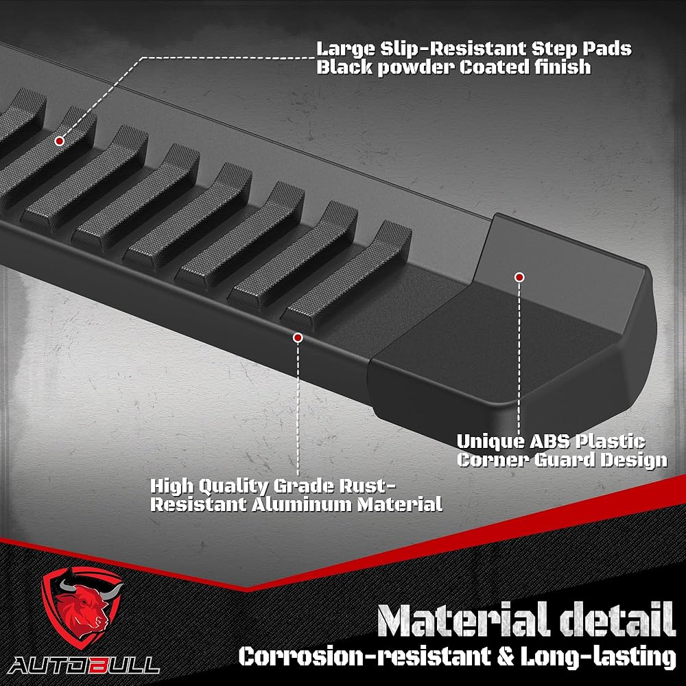 Protection: Autobull running boards help to protect your vehicle's exterior from scratches, dings, and other damages that can occur from debris or minor accidents.
