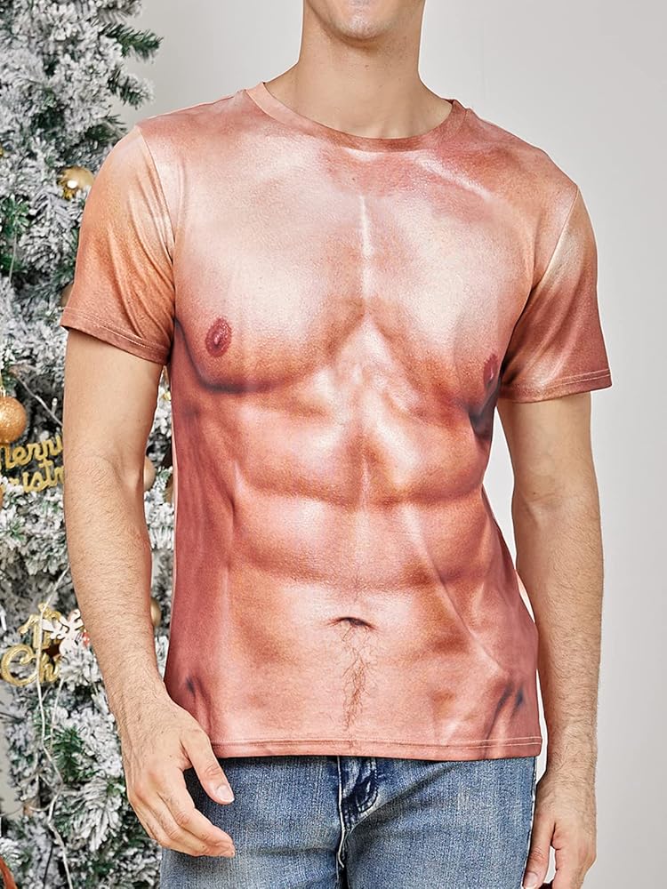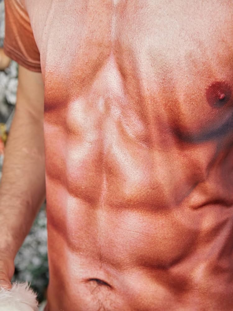 Unleash your inner confidence with this eye-catching graphic t-shirt Featuring a bold and realistic print of a toned, muscular torso, this shirt is sure to turn heads wherever you go Made from breathable fabric, it offers a comfortable and flattering fit that hugs your body in all the right places Whether you're hitting the gym, running errands, or just lounging at home, this t-shirt is the perfect addition to your casual wardrobe With its striking design and comfortable construction, you'll feel empowered and ready to take on any challenge that comes your way