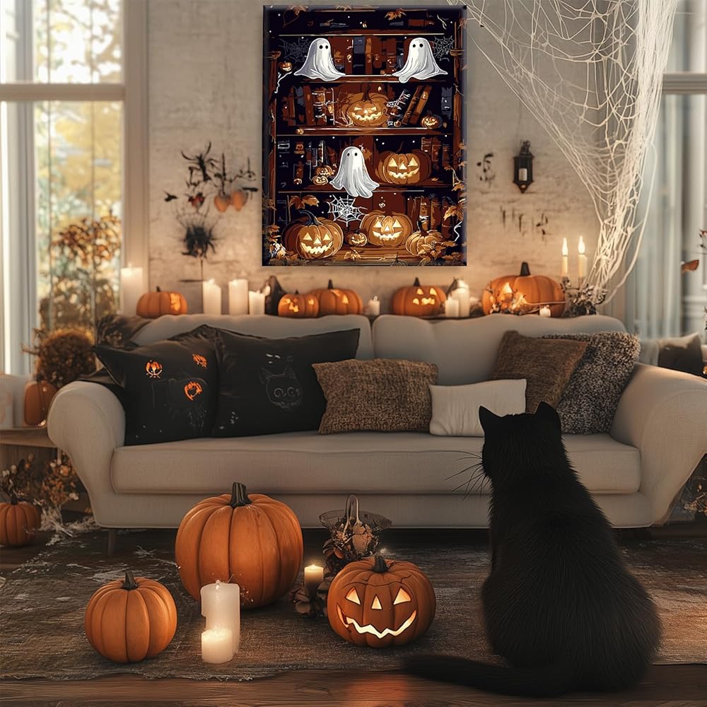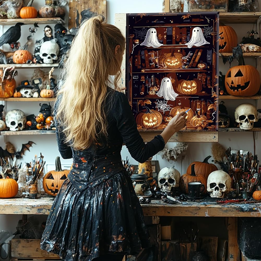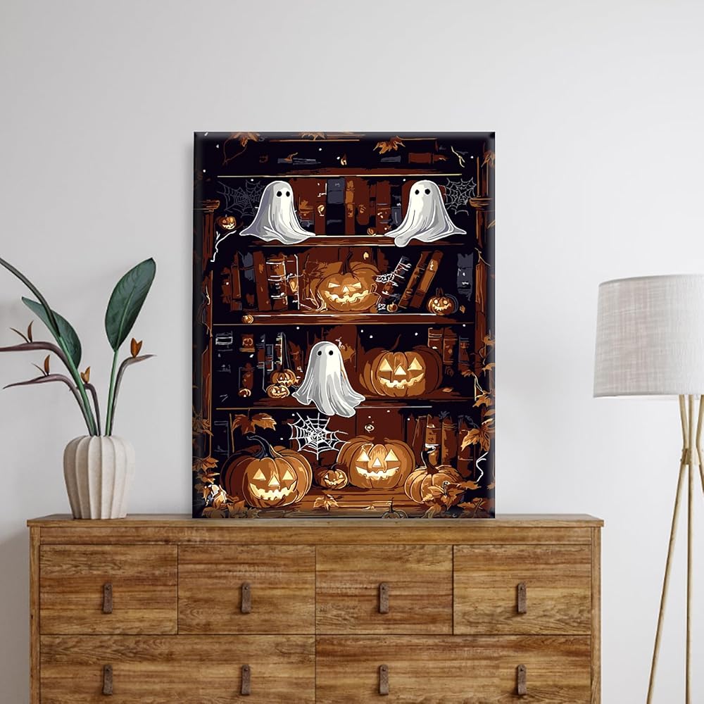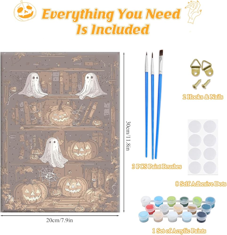 Halloween Paint by Numbers Kits for Adults Beginner with Framed Canvas, Ghost Pumpkins Color by Number, Easy Adult Paint by Numbers Painting Kit, Acrylic Arts and Crafts for Home Wall Decor 8x12inch