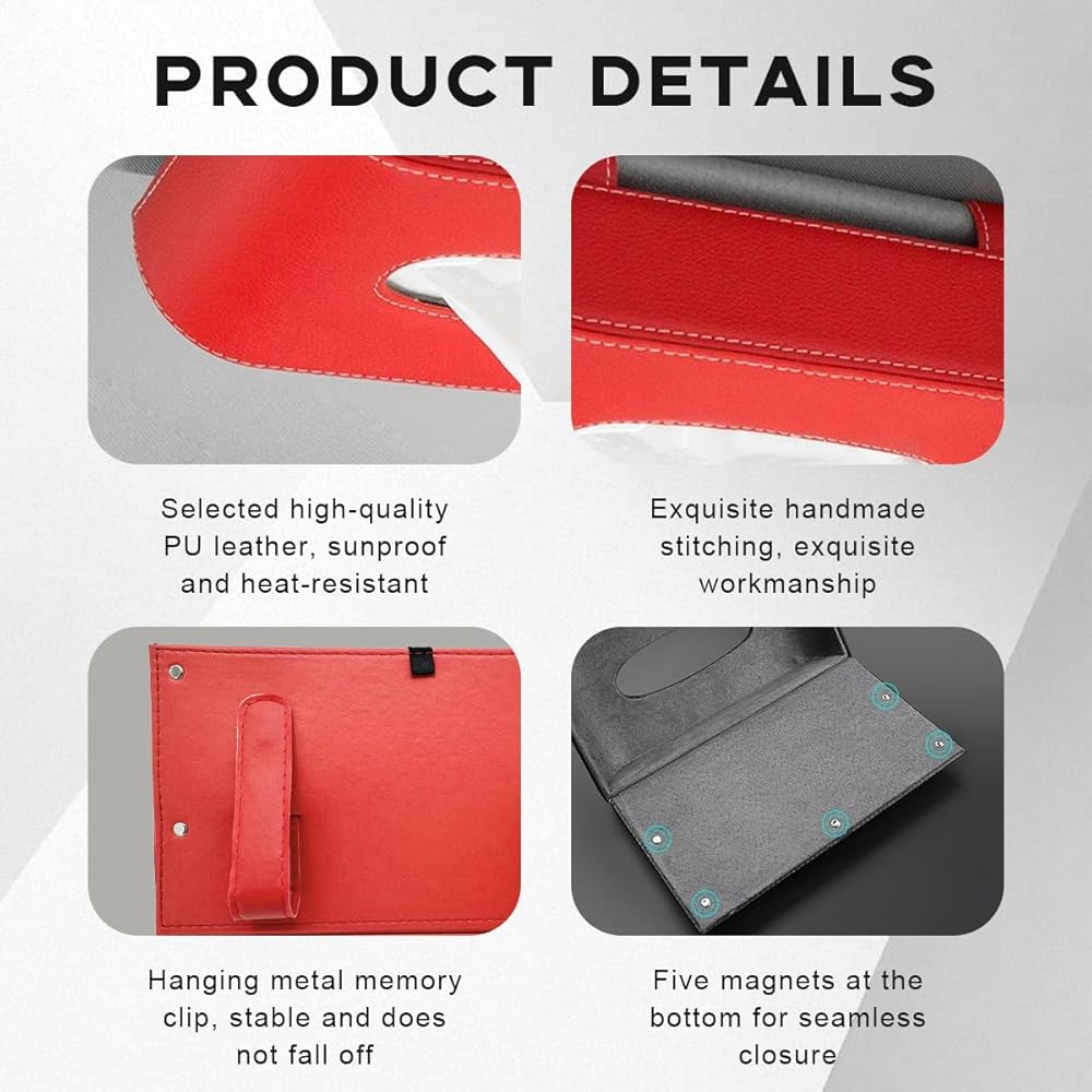 【Easy Installation】: No tools are required for installation and the installation process will not damage your car. This tissue holder has two memory metal clips which can be adjusted according to your needs. Once the metal clips are properly adjusted, the tissue holder can be firmly fixed in the position you want.