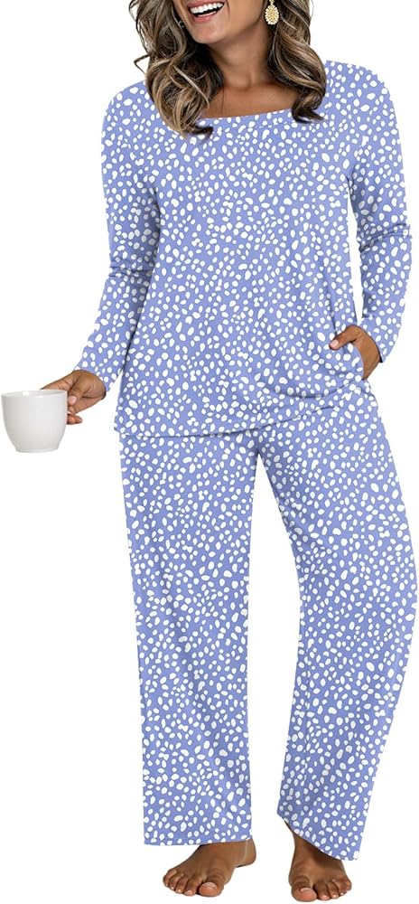 Features: The square collar design adds a sense of fashion to the pajamas, and the long-sleeved design provides better warmth, keeping you warm even on winter nights,the pajama set comes with loose pants, allowing you to feel more comfortable and free during sleep