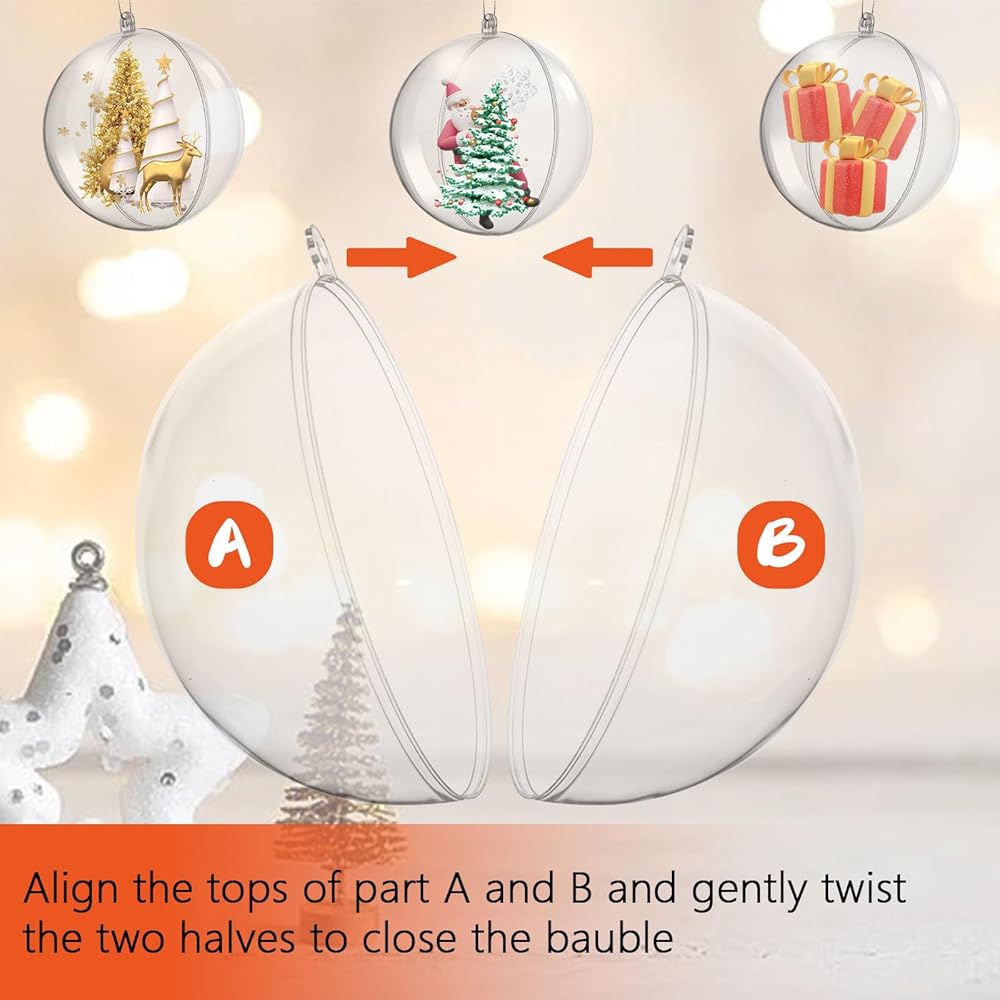 High-quality Clear Ball Ornaments - Our plastic fillable ball is made of high-quality plastic, non-toxic and odorless, firm and sturdy, shatterproof, durable and reusable, opened easily and closed tightly. Designed with a little ring on the ball for easy hanging. You just need to thread the twine through the hole and hang the ball on any palce you like.